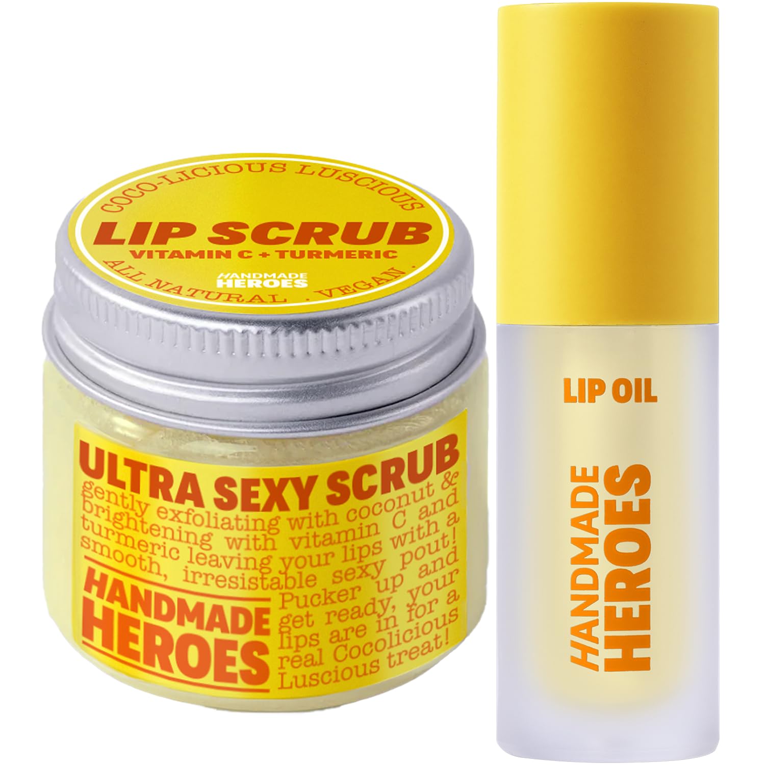 Handmade Heroes Turmeric & Vitamin C Lip Care Kit 100% Natural Lip Scrub & Lip Oil for Dry Dull Lips - Brightening & Nourishing Lip Therapy Set