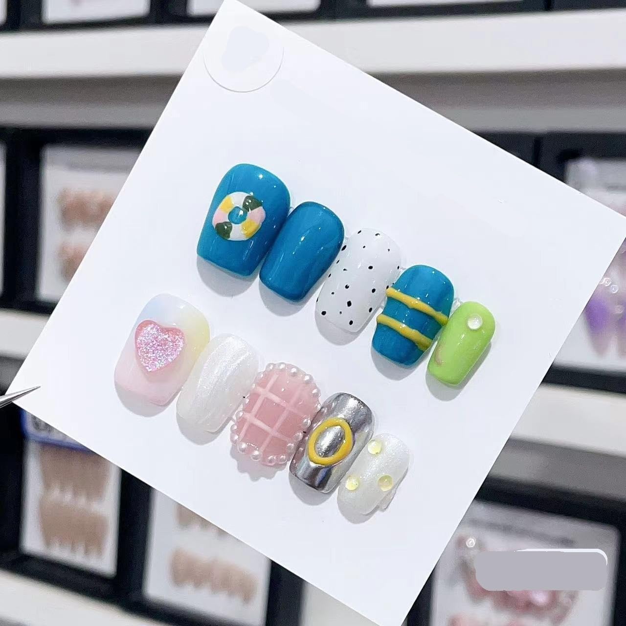 Create stunning nail designs with our handmade long and short nail patches. These patches are perfect for enhancing artificial nails or adding a pop of color to natural nails. Each patch is carefully handmade for a unique and personalized look. Available in both long and short sizes, these nail patches offer versatility in nail designs. Made with high-quality materials, they are durable and long-lasting. Apply and remove them easily without damaging your nails. Elevate your nail art with our handmade long and short nail patches.5. Easy to apply and remove without damaging the nails. 4. Made with high-quality materials for long-lasting wear. 3. Perfect for enhancing artificial nails or adding a pop of color to natural nails. 2. Available in both long and short sizes for versatile nail designs. 1. Handmade with care for a unique and personalized look.