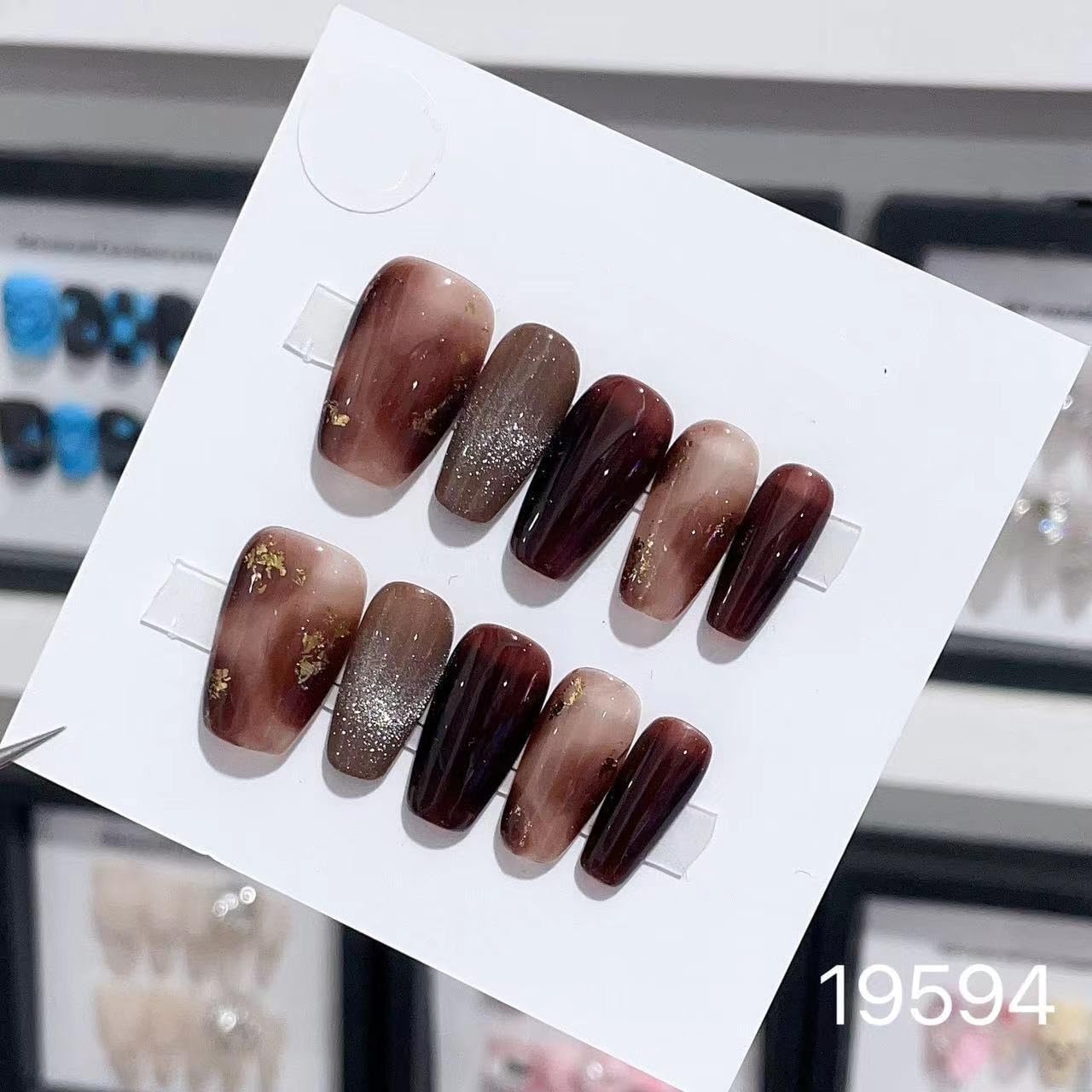 Handmade Long and Short Nail Patches for Artificial Nail Enhancement(Color:19594 Size:S)