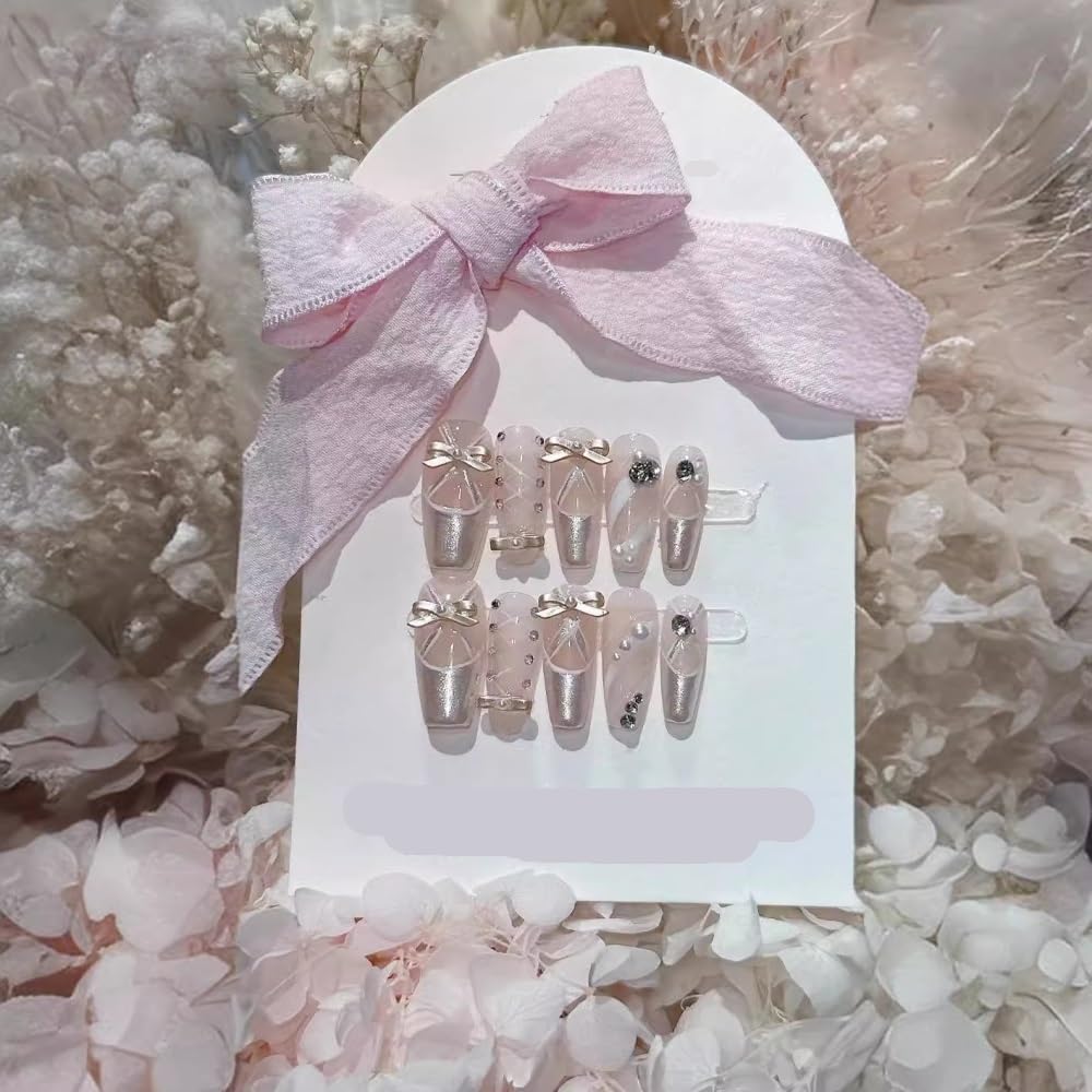 Handmade nail art luxurious French style detachable fake finger(Size:Xs)