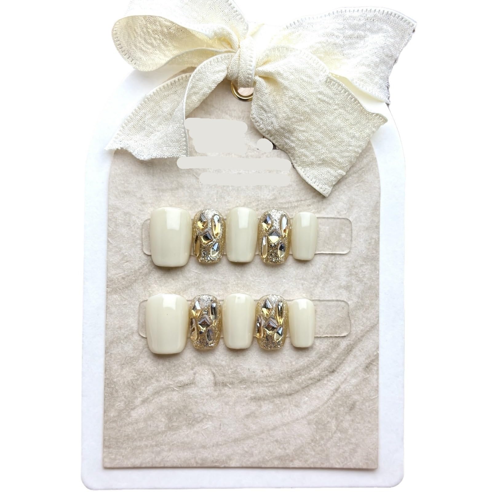 Enhance your manicure with these Handmade Milk White Champagne Sparkling Short Square and Circular Detachable Fake Nail Patches. Each nail patch is carefully crafted by hand to ensure the highest quality. The milk white champagne color adds an elegant and sophisticated touch to your nails, while the sparkling design adds a glamorous sparkle. With both short square and circular shapes included, you can create versatile styles to suit any occasion. These nail patches are also detachable, making them easy to apply and remove. Elevate your nail game with these stunningDetachable for easy application and removal. Short square and circular shapes for versatile styles. Sparkling design for a glamorous look. Milk white champagne color adds elegance and sophistication. Handmade with care and precision.