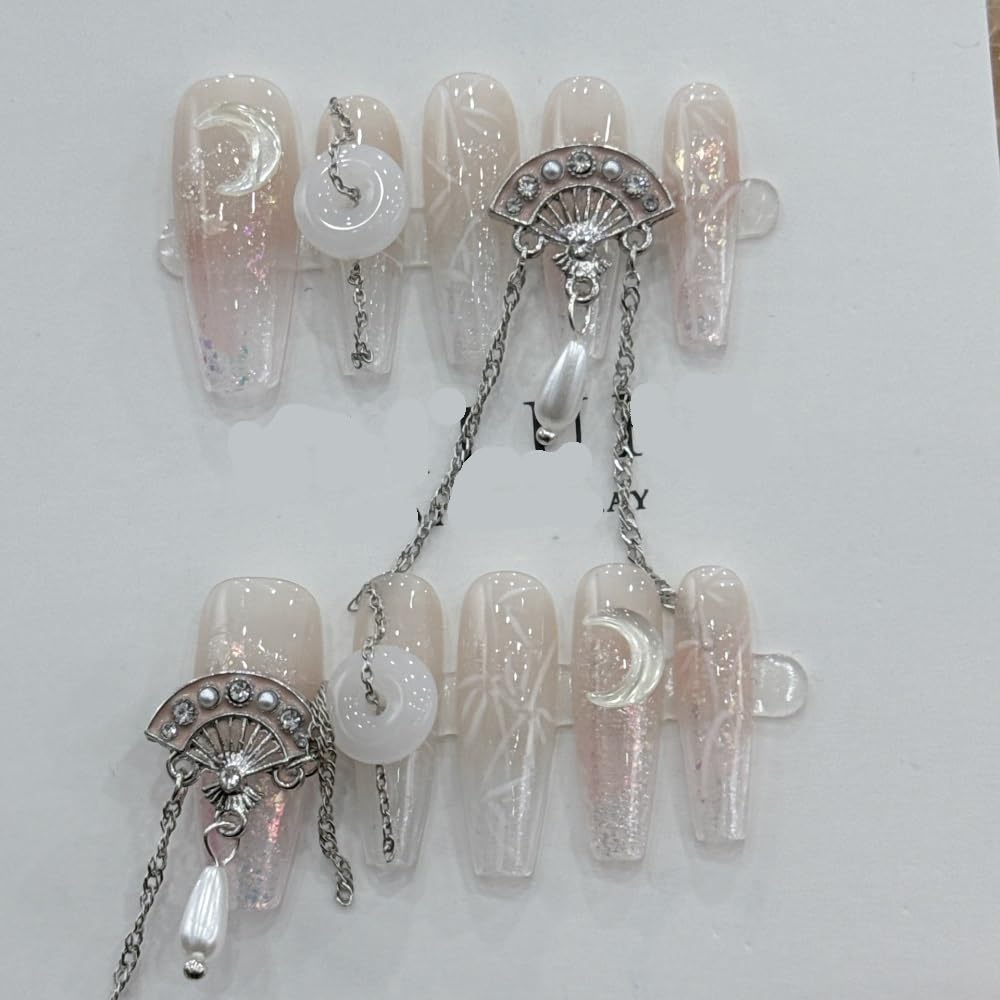 Handmade Nail Wearing New Chinese Style Qipao Nail and Nail Enhancement Patch(Size:L)