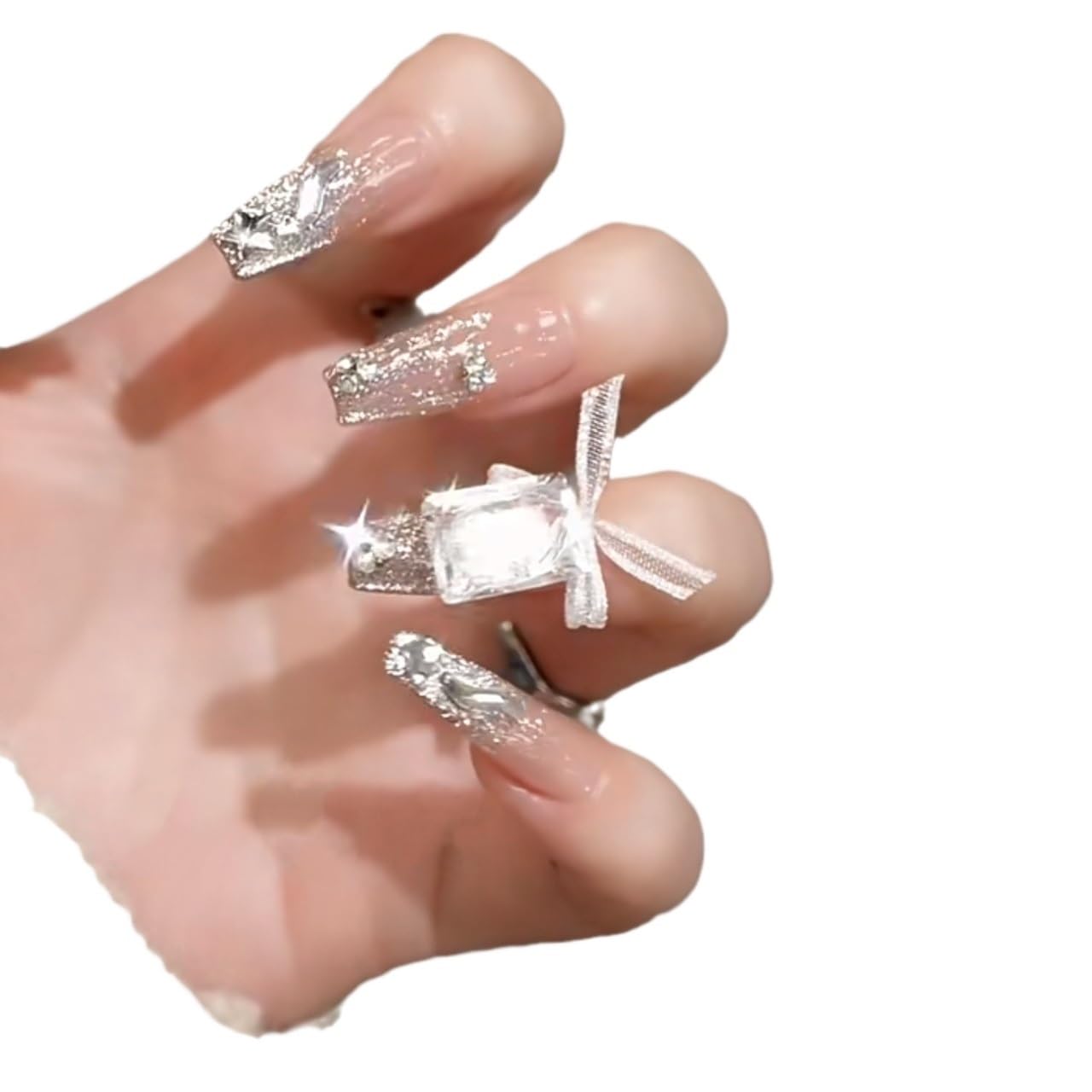 Introducing our handmade wearable nail bow, a detachable nail patch designed to enhance your nails. Made with care and attention to detail, this long duckbill shaped nail enhancement is perfect for adding a unique and stylish touch to your manicure. Simply apply the detachable nail patch to your nails and enjoy the beautiful bow design. Whether you're a nail art enthusiast or a professional, this wearable nail accessory is a must-have for creating stunning nail looks. Upgrade your nail game with our handmade nail bow today!