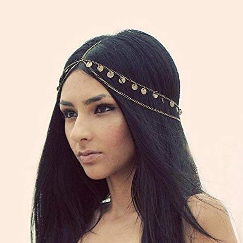Handmadejewelrylady Haarschmuck aus Metall, mit Strass, Kopf-Kette für Damen