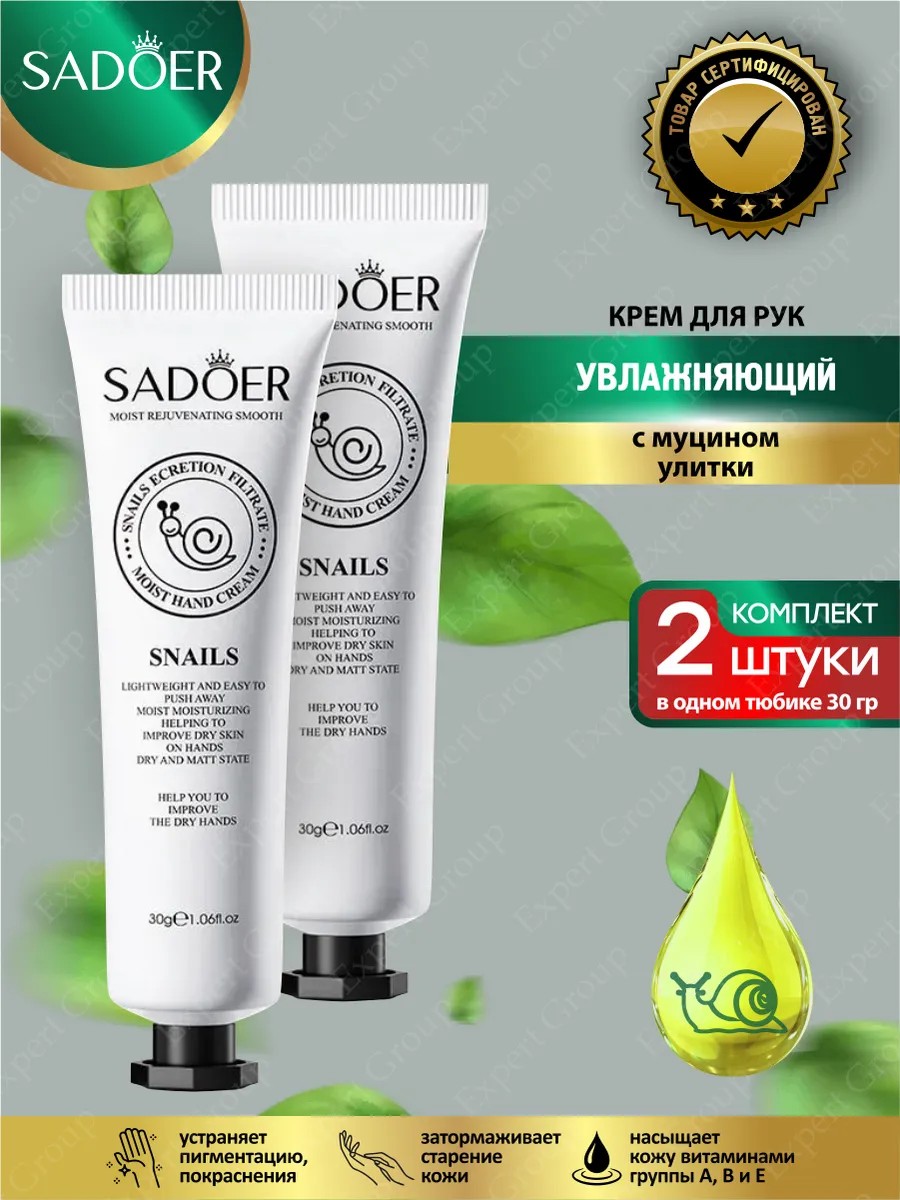 | Комплектация | Увлажняющий крем для рук Sadoer с муцином улитки 30 гр х 2 шт. |