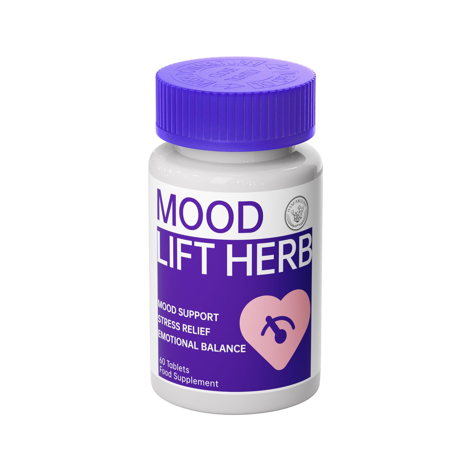 HANFANGLING Natural Herbal Supplement Mood Lift Herb - Natural Calm Supplement with Ashwagandha & L-Theanine | 60 Heart-Shaped Tablets | Supports Emotional Balance, Focus & Sleep Quality, Vegan