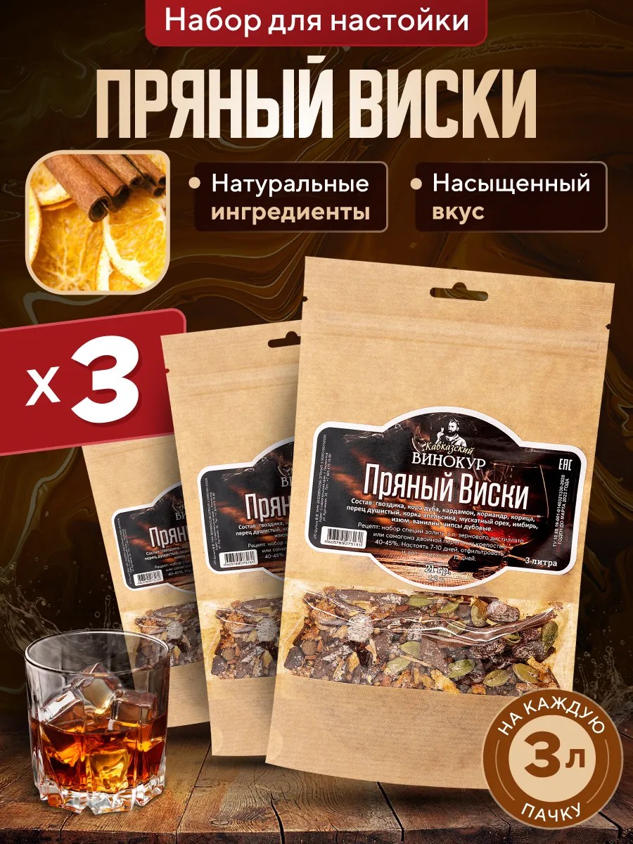 Шикарные настойки от Кавказского Винокура - Пряный виски. Набор настоек поможет приготовить душистый и ароматный напиток. 1 упаковка рассчитана на приготовление 3 литра напитка.
