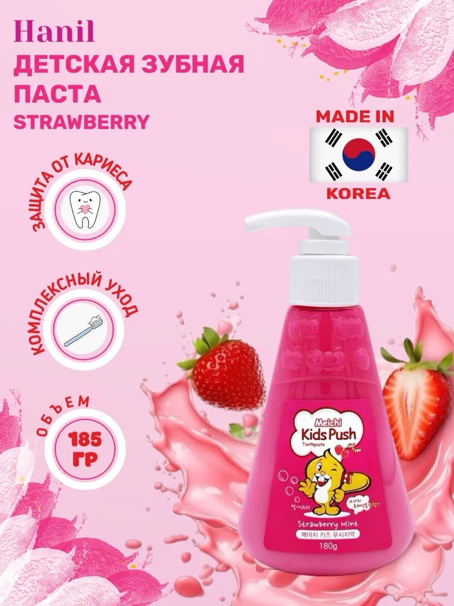 Зубная паста Hanil Kids со вкусом клубники — это специальный продукт для детей, разработанный с учетом их потребностей и особенностей. Паста подходит для ежедневной гигиены полости рта ребенка, обеспечивая мягкое очищение зубов и десен.
