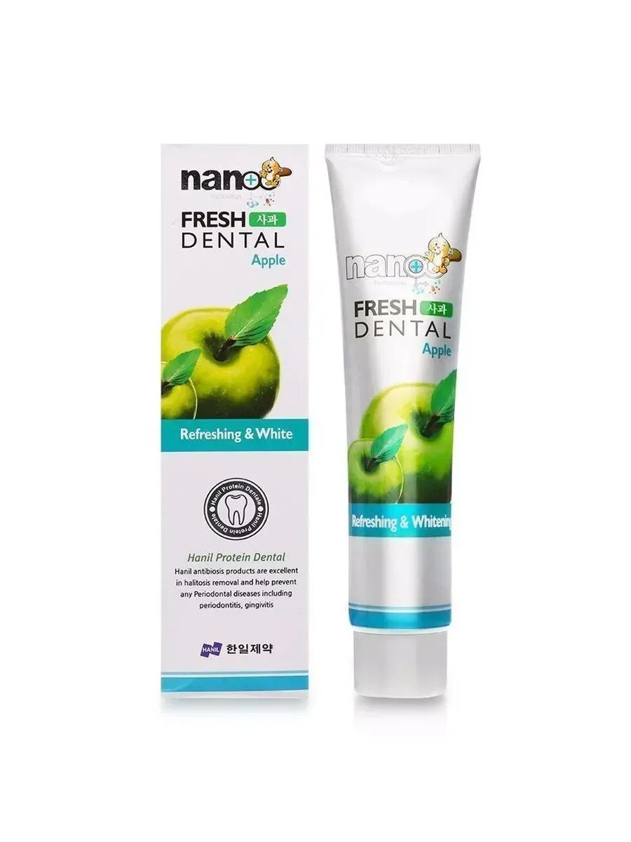 Korean Hanil Nano Fresh Dental toothpaste with natural apple flavor helps keep tooth enamel and gums clean, freshens breath, prevents caries and tartar, and prevents gum inflammation.