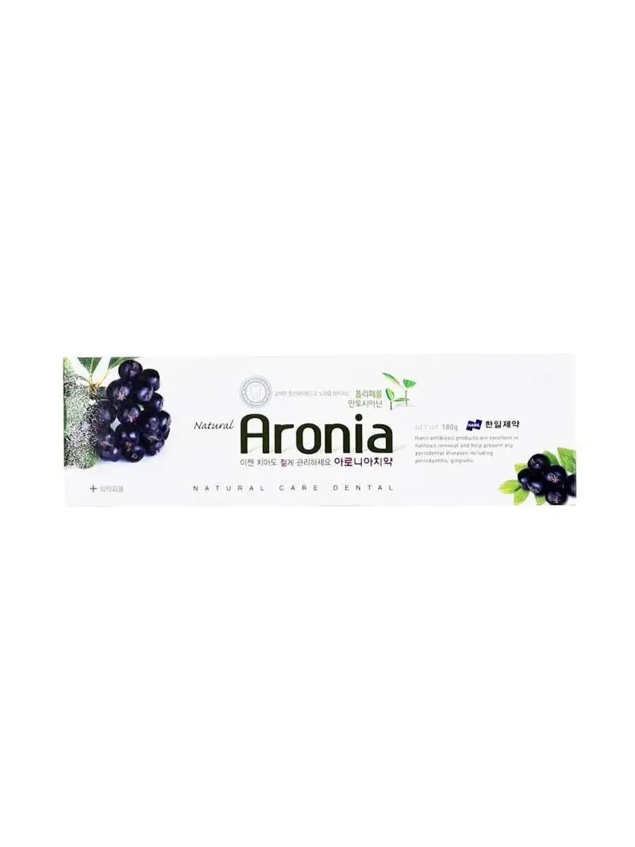Зубная паста Hanil Aronia с выделением экстрактом черноплодной рябины значительного воспаления стенок толстой кишки в ротовой полости, повышает их тонус и эластичность. Паста успешно нормализует кислотно-щелочной баланс, а с высоким содержанием йода в длительном свободном противостоитовом воспалительном процессе, обеспечивает мощную антибактериальную защиту.