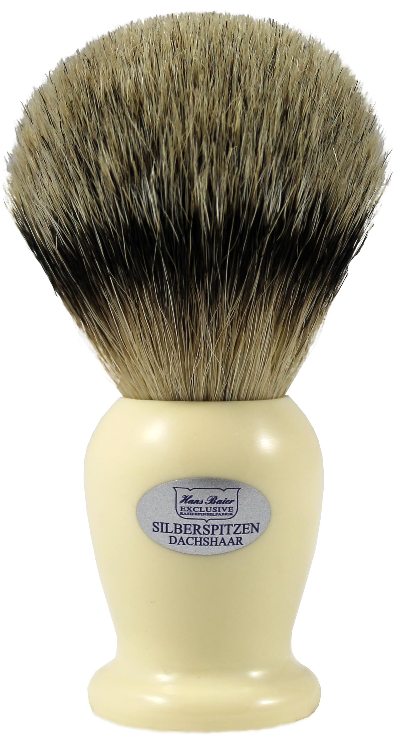 Razor brush made of real Silberspitz-Tachshaar hand-bound.The hair comes from the neck area of ??the roof.The finest hair ensures stable and voluminous foam when using a shaving soap.With this shaving brush, you work intensively into the beard in a circular movements and the foam puts itself around the whiskers.Real Silberspitz-Tachshaar Hand-bound (no imitation) size 3 (knot = 25.5mm).Grip acrylic cream.Made in Germany Nursing instructions: After use, wash the brush thoroughly under warm, flowing water to remove the remaining soap from the hair.Refuse the rough wet.Keep the shaving brush hanging or at least lying so that the residual moisture cannot damage the hair and handle.We recommend storing in one of the Hans Baier shaving stands.
