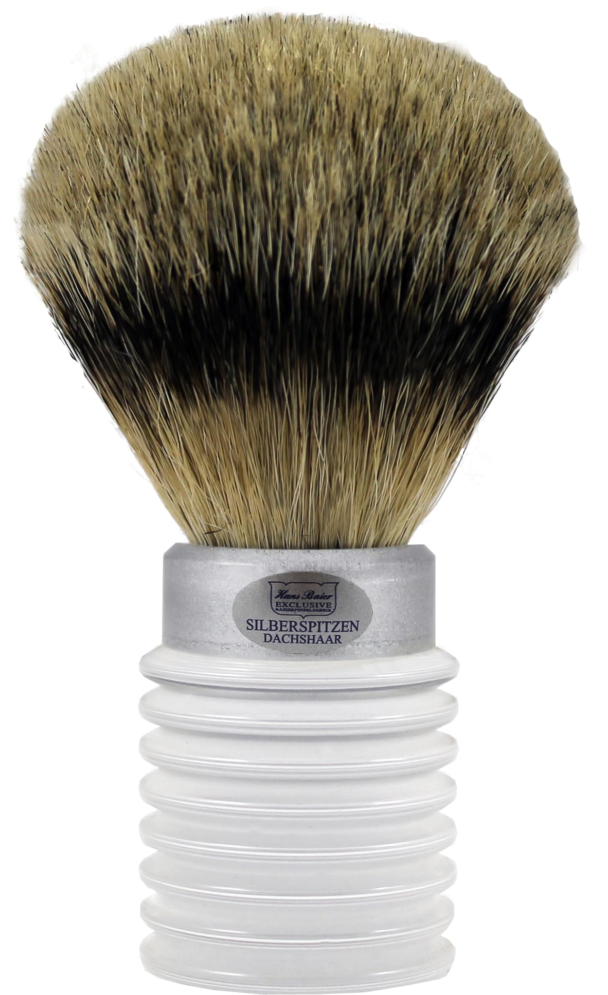 Razor brush made of real Silberspitz-Tachshaar hand-bound.The hair comes from the neck area of ??the roof.The finest hair ensures stable and voluminous foam when using a shaving soap.With this shaving brush, you work intensively into the beard in a circular movements and the foam puts itself around the whiskers.Real Silberspitz-Tachshaar hand-bound (no imitation) knot = 29.5mm.Grip acrylic matted.Made in Germany Nursing instructions: After use, wash the brush thoroughly under warm, flowing water to remove the remaining soap from the hair.Refuse the rough wet.Keep the shaving brush hanging or at least lying so that the residual moisture cannot damage the hair and the handle.We recommend storing in one of the Hans Baier shaving stands.