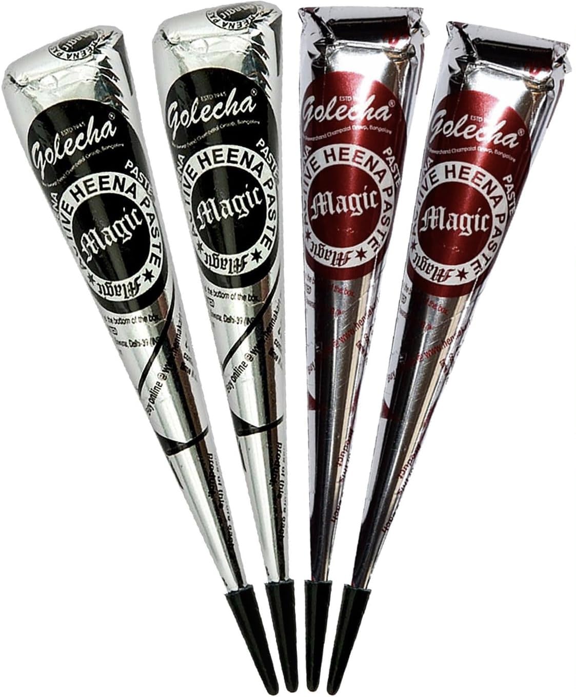 This colored kit (2 Brown Cones 2 Black Cones) was created for those who love the quick effect of color immediately after application. The final color appears instantly after the gel dries, taking approximately 30 to 40 minutes. The effect lasts about 3 days. These cone-shaped applicators were created by the manufacturer for use at special occasions, festivals, and in the entertainment industry, where an immediate color effect is required. INGREDIENTS Ingredients: Water, Lawsonia inermis extract, Cyamopsis Tetragonolobus gum, Eucalyptus globulus leaf oil, Fenonip 0.40 (phenoxyethanol, methylparaben, propylparaben, butylparaben), - CI 77266, CI 445430, CI 420, CI 420, CI 420, CI 420, CI 420, CI 420, CI 420, CI 420, CI 42090, CI 4090, CI 16185, CI 18050, CI 15980, CI 12085. DIRECTIONS Directions for use: Cut the tip of the cone by approximately 1 to 2 mm, apply the gel to the body, and wait 30 to 40 minutes until. Once it's dry, gently peel it off. If you want the final effect to last longer, we recommend applying a second double layer of all the tattoos the day after the first application. See moreThe real advantage of these products is the presence of a literally microscopic amount of parabens, a total of 0.40 . This component plays a crucial role in protecting the henna from any pathogenic bacteria, which is especially important for natural products. This amount is considered completely safe for health. Ingredients: Aqua, Lawsonia inermis extract, Cyamopsis Tetragonolobus Gum, Eucalyptus Globulus Leaf Oil, Phenoni 0.40 (Phenoxyethanol, Methylparaben, Ethylparaben, Propylparaben, Butylparaben), - CI 77266, CI 454430, CI 420, CI 420, CI 420, CI 420, CI 420, CI 420, CI 420, CI 4090, CI 16185, CI 18050, CI 15980, CI 12085. User category: Children 3 years and under. No PPD, no harmful chemicals, EU certified. Caution: Allergy testing should be performed at least 24 to 72 hours before active use. This colored gel kit (2 brown cones 2 black cones) is designed for those who love a quick color effect immediately after application. The final color appears instantly after the gel dries, taking approximately 30 to 40 minutes. The effect lasts about 3 days. These cones were created by the manufacturer for use at special occasions, festivals, and in the entertainment industry, where an immediate color effect is required. Golecha Deezee Color Kit: 4 x 25g cones (2 brown 2 black).HANUMAN STORE Golecha Deezee 4x25g, Marron Black, No PPD, No AmmonyDESCRIPTION DU PRODUIT DESCRIPTION DU PRODUIT Ce kit coloré 2 Marron Cones 2 Black Cones a été créé pour ceux qui aiment l'effet rapide de la couleur juste après l'application. La couleur finale apparaît immédiatement après avoir appliqué le gel sec, prend environ 30 à 40 minutes. L'effet dure environ 3 jours. Une sorte de cônes a été créée par le fabricant pour une utilisation lors d'occasions spéciales, festivals, dans l'industrie du divertissement, lorsqu'un effet de couleur immédiat est requis. INGRÉDIENTS Ingrédients : eau, extrait de lawsonia inermis, Cyamopsis Tetragonolobus Gum, huile de feuilles d'eucalyptus globululus, fenonip 0,40 (phénoxyathanol, méthylparabène, propylparabène, propylparabène, butylparabène), - CI 77266, CI 44 5430, CI 420, CI 420, CI 420, CI 420, CI 420, CI 420, CI 42090, CI 4. 4090, CI 16185, CI 18050, CI 15980, CI 12085. MODE D'EMPLOI Instructions d'utilisation : couper l'extrémité du cône pendant environ 1 à 2 mm, appliquer le gel sur le corps, attendre 30 à 40 minutes jusqu'à ce qu'il sèche, retirer doucement. Si vous souhaitez rendre l'effet final plus long, nous vous recommandons de créer une seconde double couche de tous les tatouages le lendemain après la première application. Voir plusLe véritable avantage de ces produits est la présence d'une quantité littéralement microscopique de parabène, un total de 0,40 . Ce composant joue un rôle très important tout en protégeant le contenu du henné de toute bactérie pathogène, ce qui est particulièrement important pour les produits naturels. Cette quantité est considérée comme absolument sans danger pour la santé. Ingrédients : Aqua, lawsonia inermis extrait, Cyamopsis Tetragonolobus Gum, Eucalyptus Globulus Leaf Oil, Phenonip 0,40 (Phenoxyathanol, Methylparaben, Ethylparaben, propylparaben, butylparaben), - CI 77266, CI 454430, CI 420, CI 420, CI 420, CI 420. 90, CI 4. 4090, CI 16185, CI 18050, CI 15980, CI 12085. Catégorie d'utilisateur : 3 ans et moins d'adultes. Aucun PPD, aucun produit chimique nocif, certifié dans l'UE. Attention : le test allergique doit être effectué au moins 24 à 72 heures avant l'utilisation active. Ce gel coloré Kit 2 Cônes marron 2 Black Cones créé pour ceux qui aiment l'effet de couleur rapide immédiatement après l'application. La couleur finale apparaît immédiatement après avoir appliqué le gel sec, prend environ 30 à 40 minutes. L'effet dure environ 3 jours. Une sorte de cônes a été créée par le fabricant pour une utilisation lors d'occasions spéciales, festivals, dans l'industrie du divertissement, lorsqu'un effet de couleur immédiat est requis. Kit couleur Golecha Deezee 4 x 25 g Marron 2 pièces couleur noire 2 pièces.