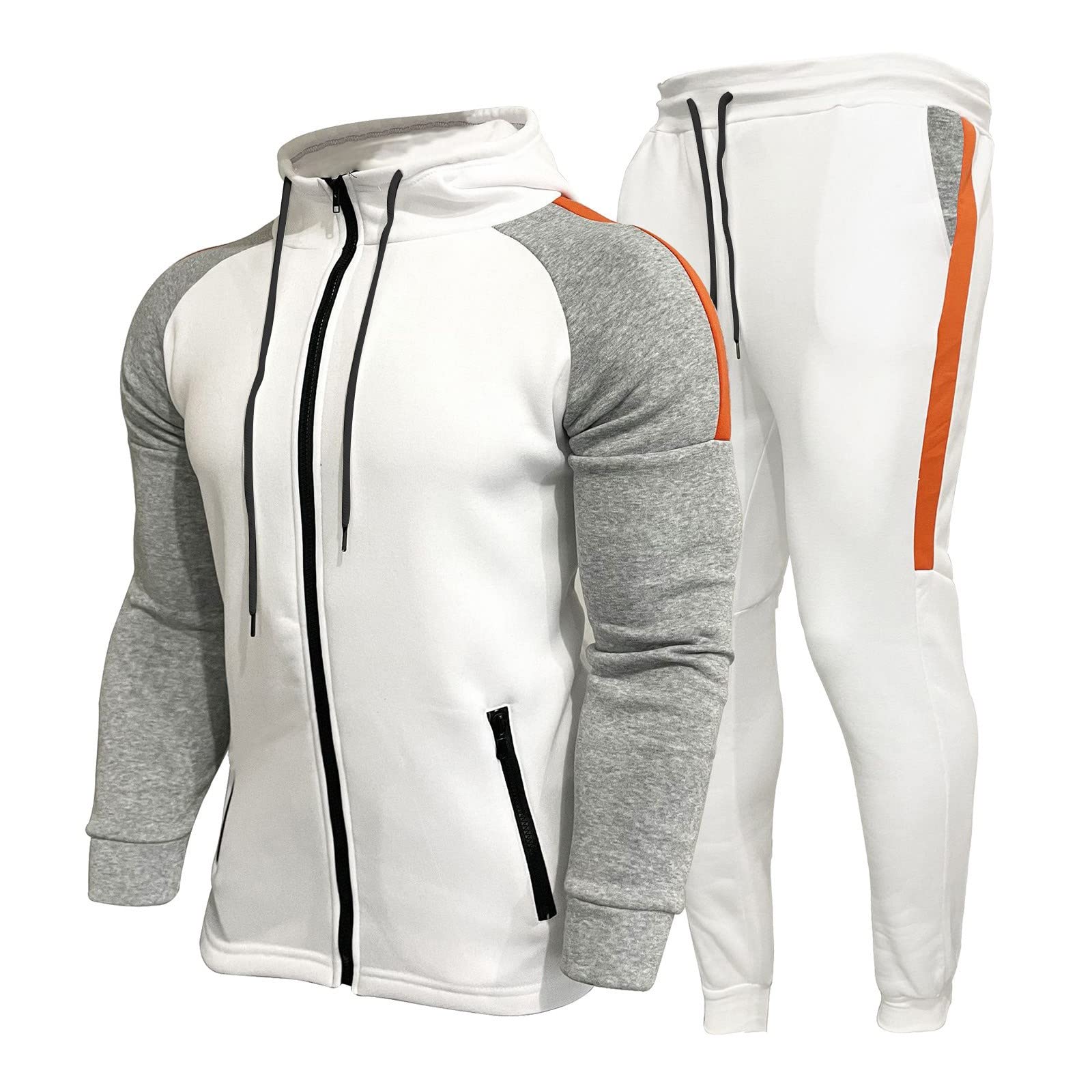 HANXIULIN Jogginganzug Herren Sportbekleidung Herren Beiläufig Lange Ärmel Sport Jacke Hose Herren Trainingsanzug Sporthose Und Trainingsjacke XL Weiß