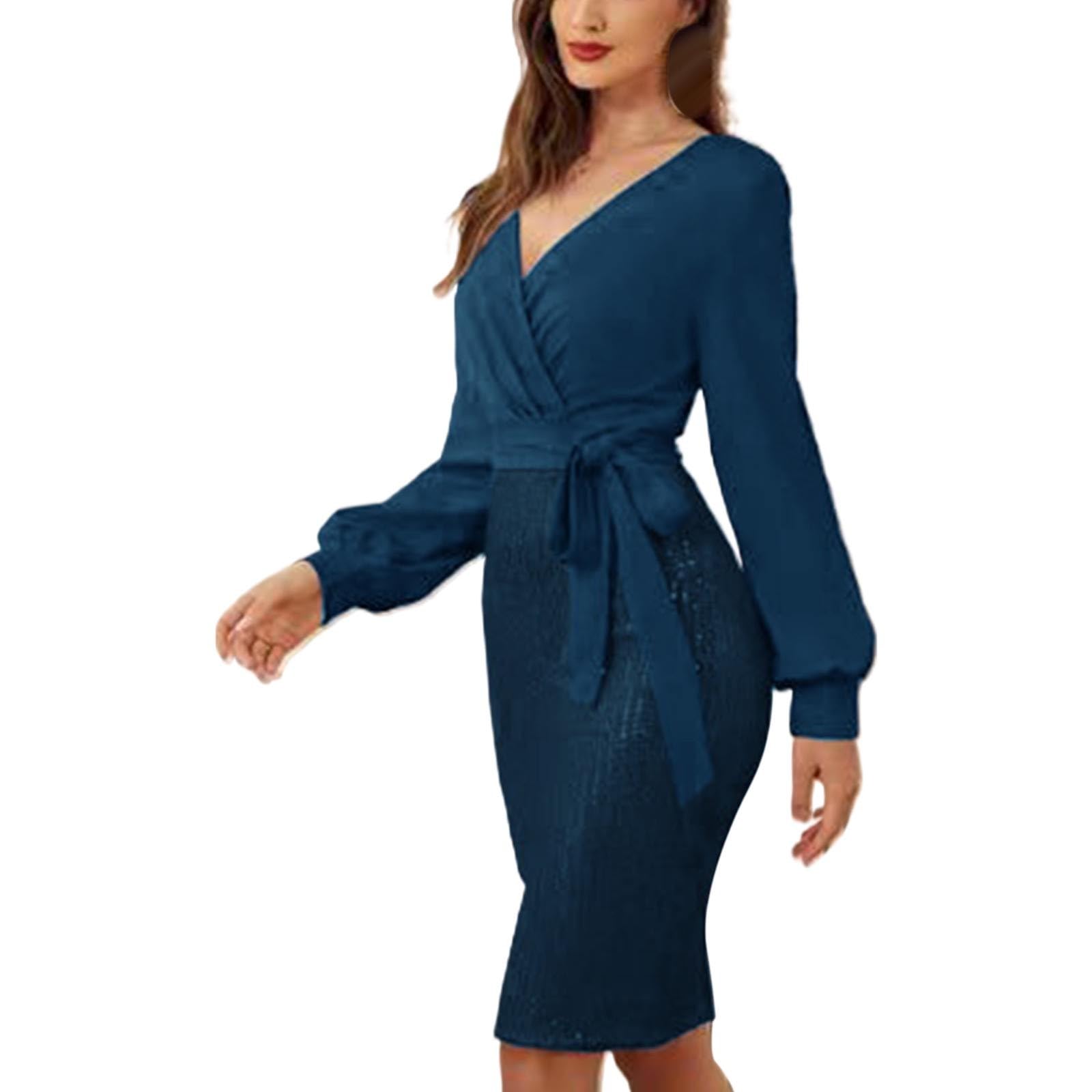 Hanxiulin party dress ladies cocktail dress glitter ladies long arm festive skate dress sexy dresses evening dress sequin dresses for women blue s