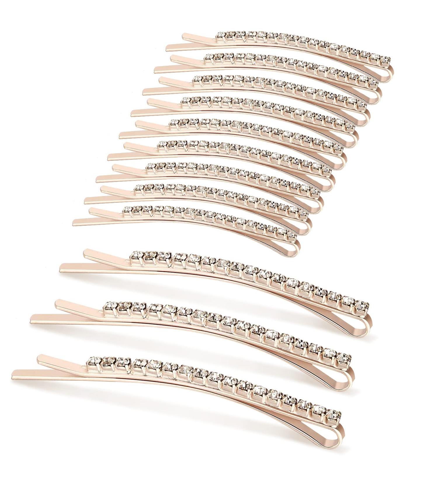 Hanyousheng Hair Pins 12 Pieces Rhinestone Bobby Pins Crystal Hair Clips Hair Slides for Women Ideal for All Hair Types (Gold)