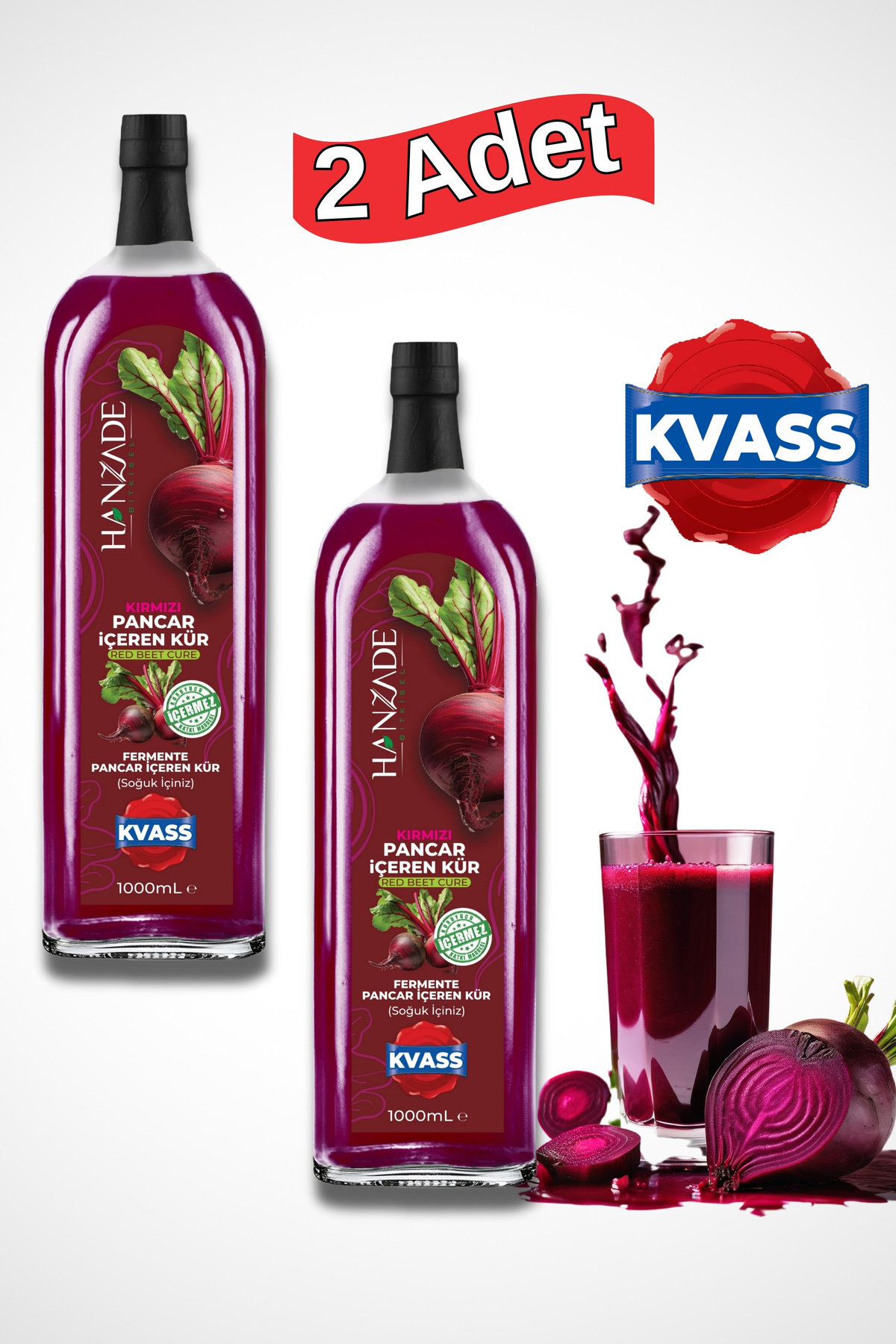 Hanzade Herbal Beet Kvass Fermented Red Beetroot Cure 1 Liter x 2 Glass Bottles