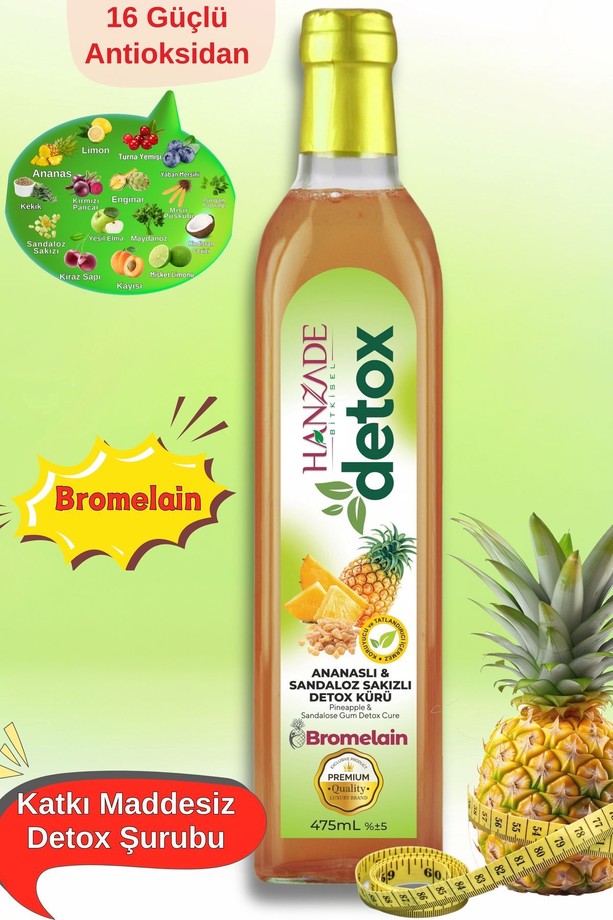 Hanzade Herbal Pineapple & Sandalwood Gum Detox Syrup Cure Bromelain 475 ml Slimming Helps Lose Weight