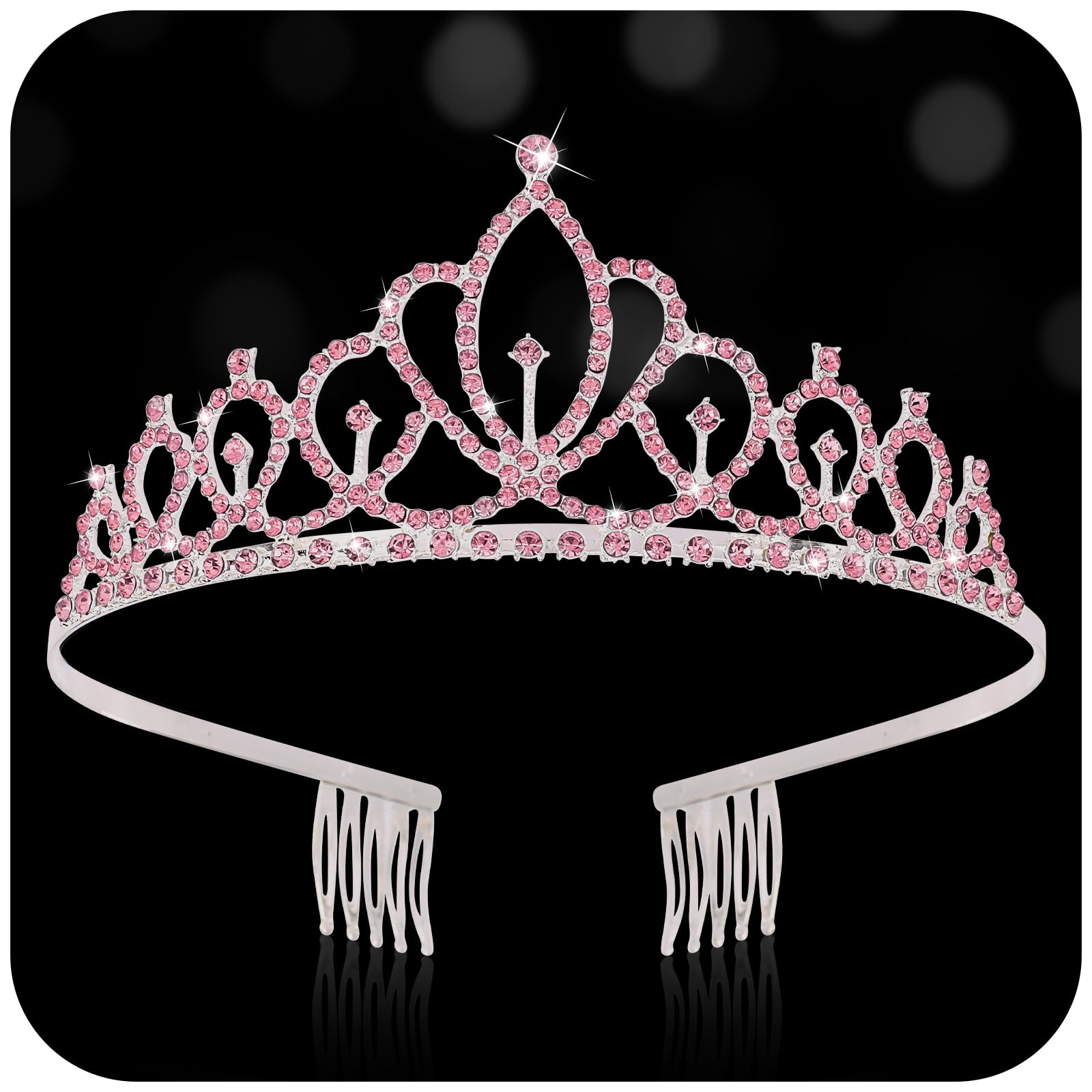 Hapdoo Pink Princess Headbands with Comb for Women Girls Rhinestone Diadem Bridal Headband for Wedding Birthday Prom Party