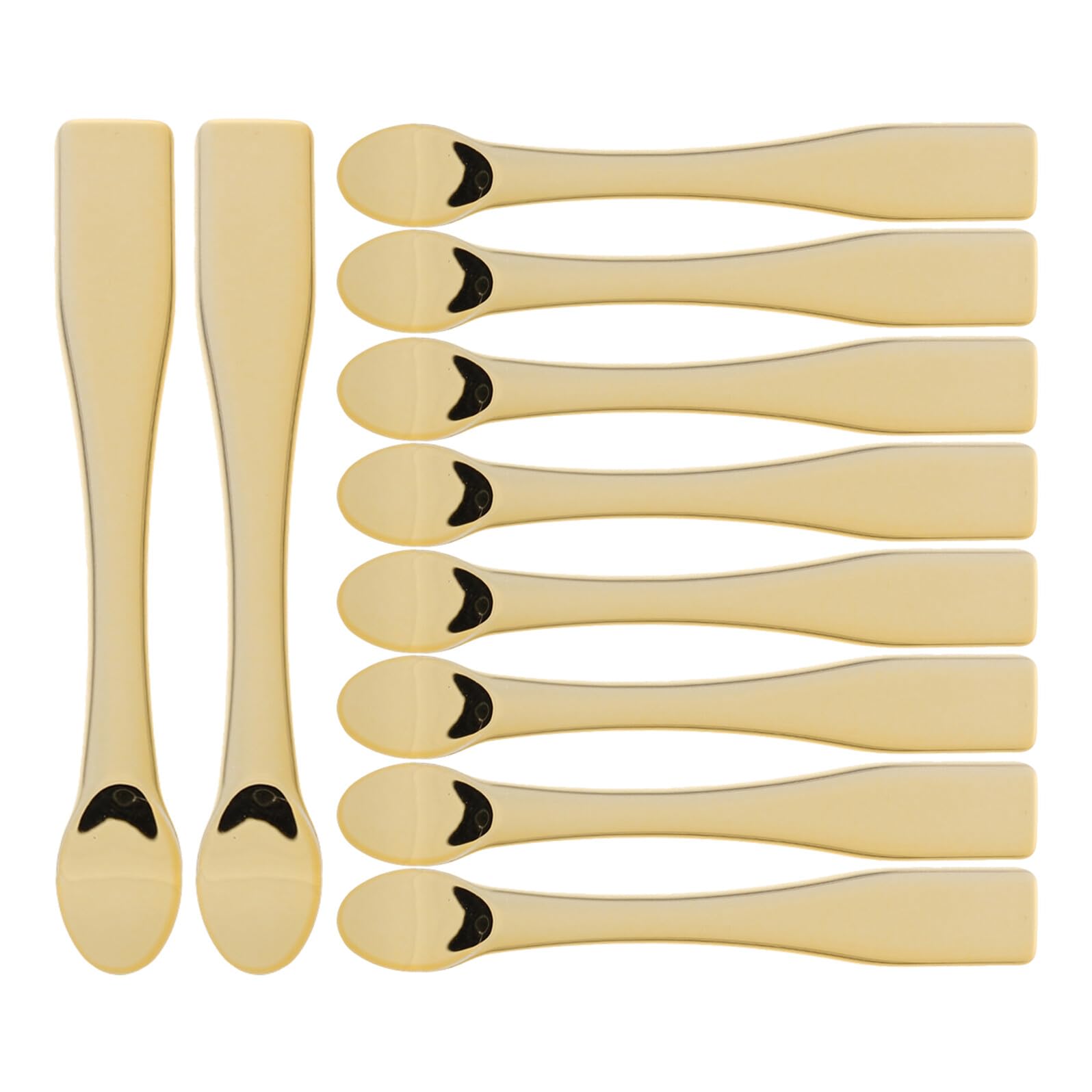 Mini or - parfait pour appliquer le masque facial, le peeling, le sérum et d'autres produits de soin de la peau. Cuillère cosmétique en métal - peut être utilisée dans une variété de produits cosmétiques : ces cuillères cosmétiques conviennent pour mélanger, tester et appliquer des lotions et des humectants. Astuce pour le masque de crème pour le visage : il peut s'agir d'une cuillère à crème pour les yeux, d'une cuillère à crème pour le visage, d'une cuillère à masque facial et d'une cuillère à maquillage. Cuillère à crème pour le visage - partagez-la avec vos amis, votre famille et votre travailleur, ils utiliseront les cuillères de sous- de crème pour les yeux. Spatule cuillère pour soins de la peau : le design de couleur dorée peut vous un excellent effet visuel, vous serez de bonne humeur.
