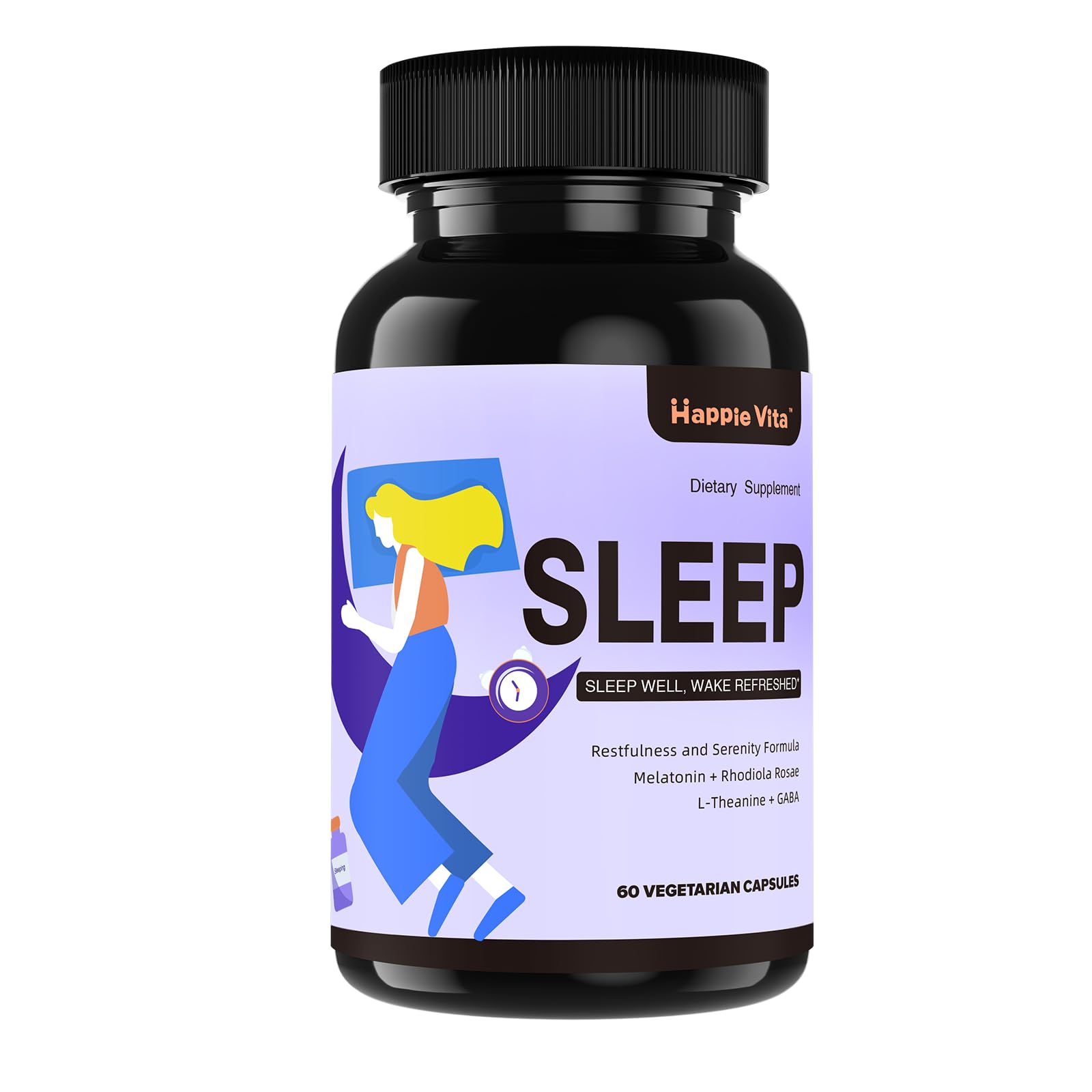 Made in USA: HappieVita sleep aids is made in the USA at our cGMP-certified facility and is 3rd party tested for purity and accuracy. Every sleeping pills is vegan, non-GMO, gluten-free and soy-free. Our mission is to help people live longer, happier, and healthier lives. Boost Immune Health: Sleep deprivation is known to suppress our body's natural immune function, and sleeping better helps support a stronger immune system. Research shows that better sleep can lead to improved performance and focus. Relax and Calm: Contains Rhodiola Rosea, L-Theanine and GABA, known for their calming effects. L-theanine works to calm your mind, GABA is universal neurotransmitter that turn off spinning thoughts on brain helps to relaxation. Fall Asleep Naturally: Melatonin is naturally produced by our bodies to manage sleep cycles, but its balance can be easily disrupted Melatonin helps you fall asleep faster, stay asleep longer, and wake up feeling refreshed. Regulate Sleep Pattern: HappieVita 4 in 1 sleep aids for adults is designed to restoring your natural sleep cycle, relaxing the body and calming the mind. Help you sleep restful and wake up refreshed and energized without feeling groggy.