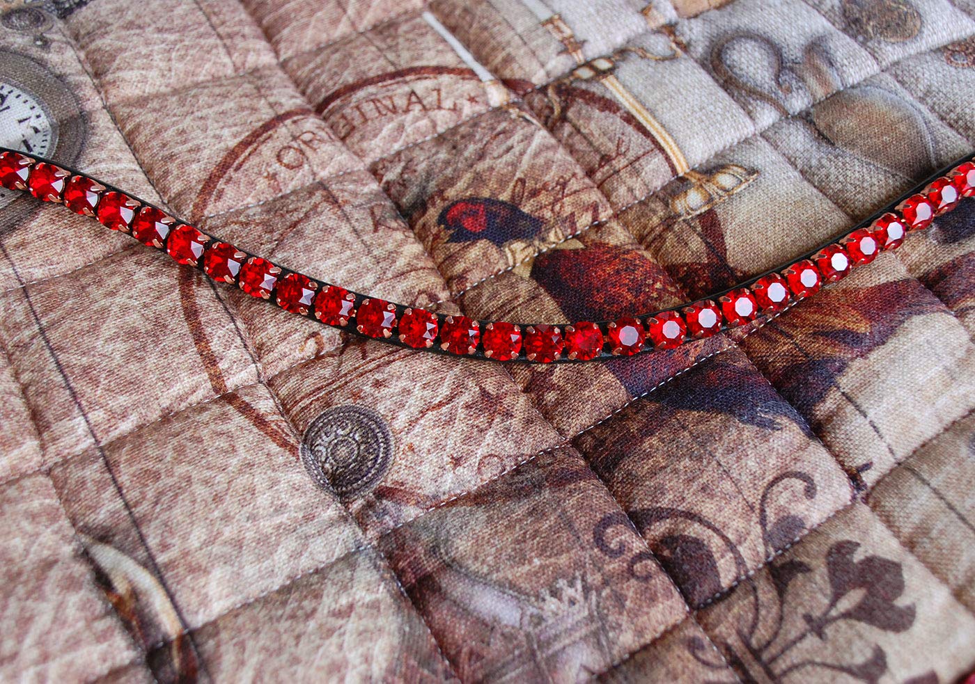 Beautiful, narrow horse headband 'Siam' with large, individually hand -sewn Swarovski Chatons in bright red. Particularly high -quality variant of our noble lucky hinge glitter head straps.The big Swarovski stones make this bridle headband something very special!With its bright red color, the head strap fits many horse outfits The red bridle forehead straps for your horse is black and dark brown in the leather colors.Other leather colors on request!Headband Lengths: Shetty: 35 cm, pony: 38 cm, VB: 40 cm, WB: 42 cm, WB XL: 44 cm, KB: 46 cm The inner size is approx. 3.1 cm.Herring straps for Micklem possible on request.High quality made in Germany!Shetty: 35cm, pony: 38cm, VB: 40cm, WB: 42cm, WB XL: 44cm, KB: 46cm.- Width 1 cm.Herring straps for Micklem or Mexican bridle as well as special color designs possible on request.Each glitter stone is elaborately sewn by hand!.Real leather in black or dark brown - other colors on request.With high -quality, large Swarovski chats in bright red.Schönes, schmales Pferde Stirnband 'Siam' mit großen, einzeln handvernähten Swarovski Chatons in strahlendem Rot. Besonders hochwertige Variante unserer edlen GlücksHucke Glitzer Stirnriemen. Die großen Swarovski Steine machen dieses Trensen Stirnband zu etwas ganz Besonderem! Mit seiner strahlenden roten Farbe passt der Stirnriemen zu vielen Pferde-Outfits Den roten Trensen Stirnriemen für dein Pferd gibt es in den Lederfarben Schwarz Dunkelbraun. Andere Lederfarben auf Anfrage! Stirnband Längen: Shetty: 35 cm, Pony: 38 cm, VB: 40 cm, WB: 42 cm, WB XL: 44 cm, KB: 46 cm Das Schlaufeninnenmaß beträgt ca. 3,1 cm. Stirnriemen für Micklem auf Anfrage möglich. Hochwertige Qualität made in Germany!Shetty: 35cm, Pony: 38cm, VB: 40cm, WB: 42cm, WB XL: 44cm, KB: 46cm. - Breite 1 cm. Stirnriemen für Micklem oder mexikanische Trense sowie farbliche Sonderanfertigungen auf Anfrage möglich. Jeder Glitzer Stein ist aufwendig von Hand vernäht!. Echtes Leder in Schwarz oder Dunkelbraun - andere Farben auf Anfrage. Mit hochwertigen, großen SWAROVSKI Chatons in strahlendem Rot.GlücksHucke Stirnband Pferd rot 'Siam' mit großen, per Hand aufgenähten Steinen, geschwungen, schmal (WB, Lederfarbe Dunkelbraun) WB Lederfarbe Dunkelbraun