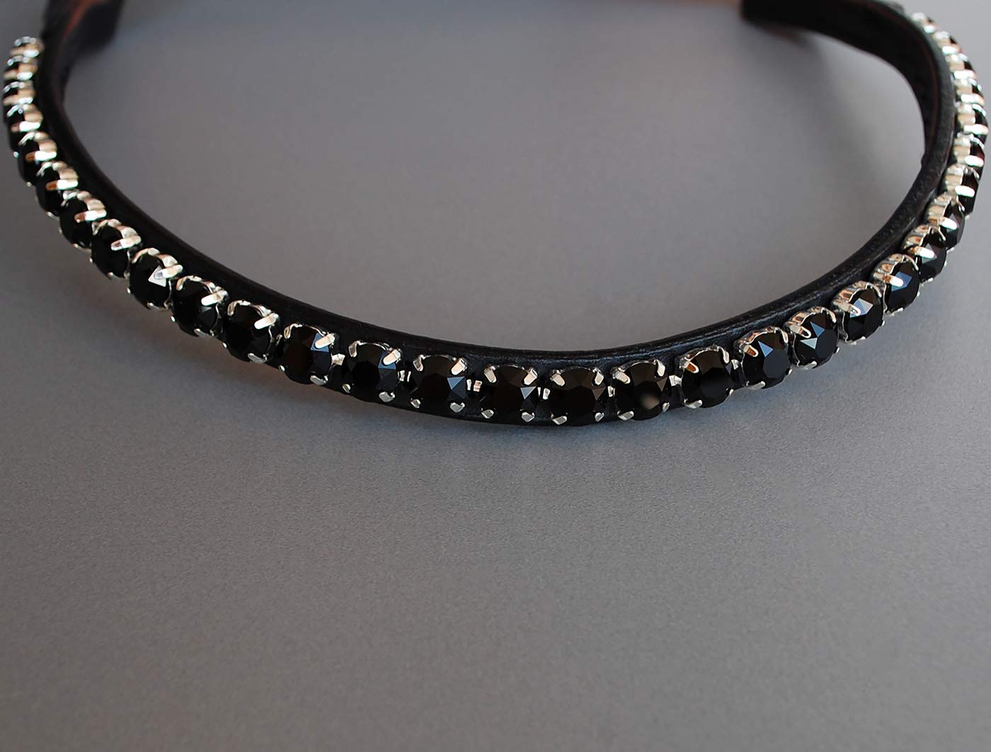 High quality, narrow horse headband 'Black Beauty' with large, individually hand -sewn Swarovski Chatons in silky matt black.Particularly high -quality variant of our sparkling, narrow bridles.The big Swarovski stones make this beautiful, black headband something very special!With its noble black color, the forehead strap fits many horse outfits The bridle strap for your horse is black dark brown in the leather colors.Other leather colors on request!Headband Lengths: Shetty: 35 cm, pony: 38 cm, VB: 40 cm, WB: 42 cm, WB XL: 44 cm, KB: 46 cm The inner size is approx. 3.1 cm.Herring straps for Micklem possible on request.High quality made in Germany!Shetty: 35cm, pony: 38cm, VB: 40cm, WB: 42cm, WB XL: 44cm, KB: 46cm.Herring straps for Micklem or Mexican bridle as well as special color designs possible on request.Each glitter stone is sewn by hand and framed silver -colored!.Real leather in black or dark brown - other colors on request.With high -quality, large Swarovski chats in silky matt black.Hochwertiges, schmales Pferde Stirnband 'Black Beauty' mit großen, einzeln handvernähten Swarovski Chatons in seidig mattem Schwarz. Besonders hochwertige Variante unserer funkelnde, schmalen Trensen Stirnriemen. Die großen Swarovski Steine machen dieses schöne, schwarze Stirnband zu etwas ganz Besonderem! Mit seiner edlen schwarzen Farbe passt der Stirnriemen zu vielen Pferde-Outfits Den Trensen Stirnriemen für dein Pferd gibt es in den Lederfarben Schwarz Dunkelbraun. Andere Lederfarben auf Anfrage! Stirnband Längen: Shetty: 35 cm, Pony: 38 cm, VB: 40 cm, WB: 42 cm, WB XL: 44 cm, KB: 46 cm Das Schlaufeninnenmaß beträgt ca. 3,1 cm. Stirnriemen für Micklem auf Anfrage möglich. Hochwertige Qualität made in Germany!Shetty: 35cm, Pony: 38cm, VB: 40cm, WB: 42cm, WB XL: 44cm, KB: 46cm. Stirnriemen für Micklem oder mexikanische Trense sowie farbliche Sonderanfertigungen auf Anfrage möglich. Jeder Glitzer Stein ist aufwendig von Hand vernäht und silberfarben eingefasst!. Echtes Leder in Schwarz oder Dunkelbraun - andere Farben auf Anfrage. Mit hochwertigen, großen Swarovski Chatons in seidig mattem Schwarz.GlücksHucke Stirnriemen Pferd geschwungen 'Black Beauty' mit großen Glitzer Steinen in matt Schwarz, handgenäht (Pony, Lederfarbe Schwarz) Pony Lederfarbe Schwarz