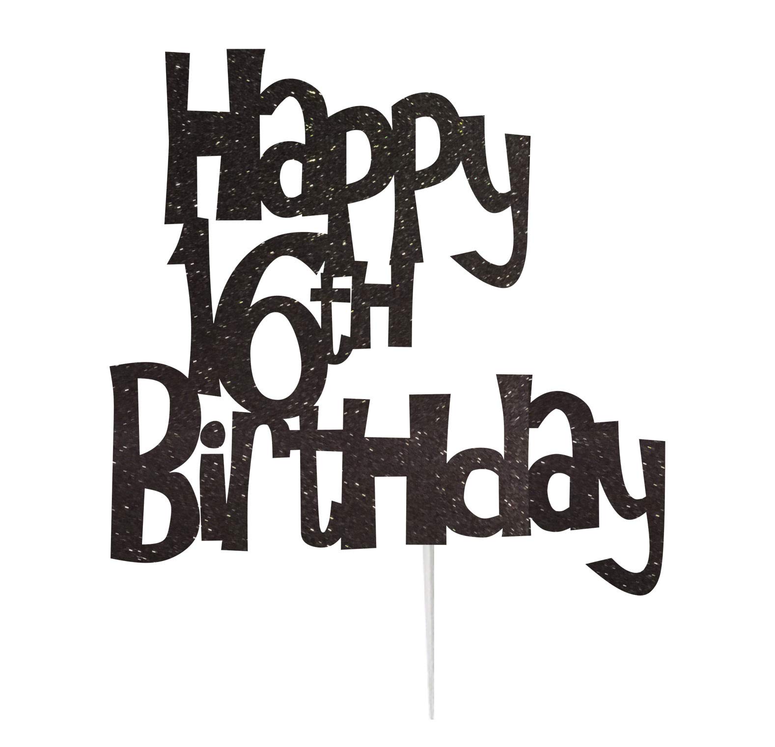 Happy 16th Birthday Cake Topper Decoration in Fun Style (Made in UK) - Black