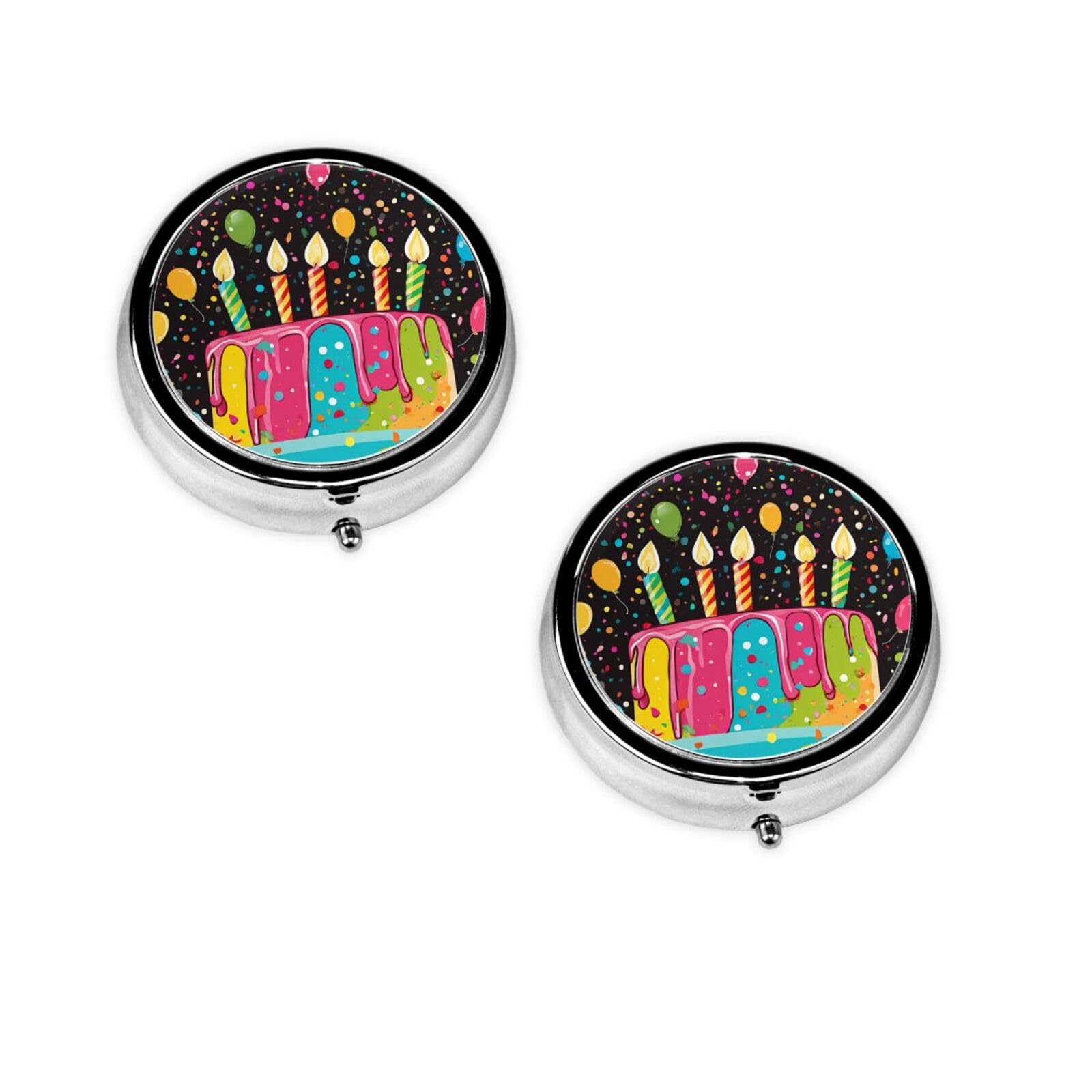 Happy Birthday Big Cake Printed Mini Round Pill Box Pill Box 3 Compartment Medicine Pill Case Pill Organizer Travel Pillbox Portable Pill Box for Pocket Home Office Use