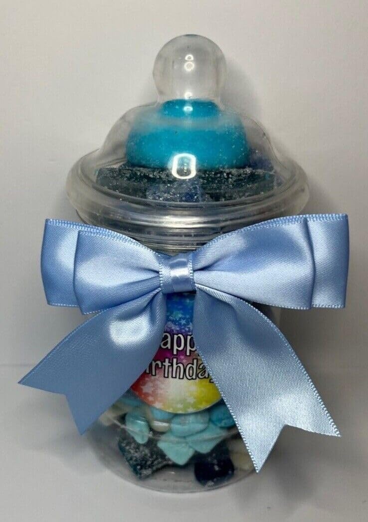 Happy Birthday Filled Pick N Mix Sweet Victorian Jar Gift Personalised Present 380ml Blue