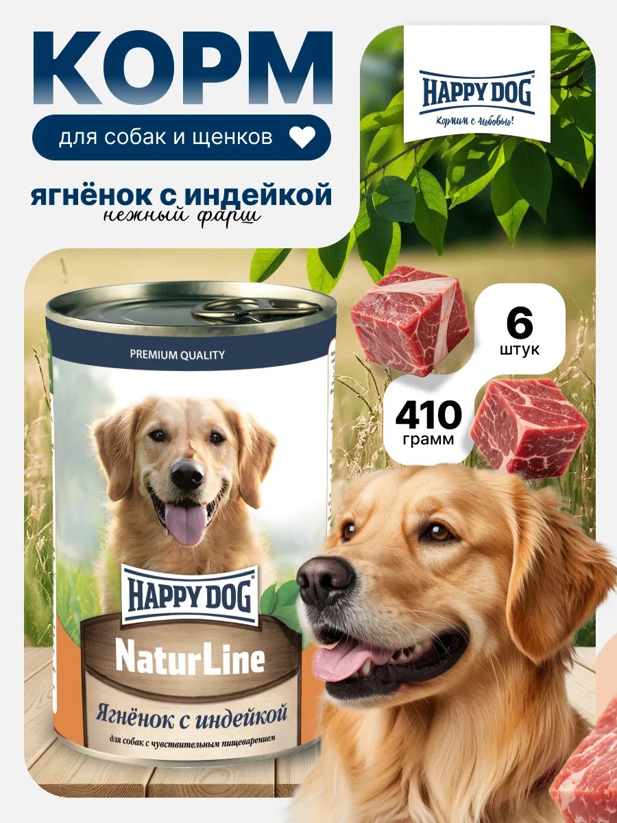 Happy Dog Влажный корм для собак и щенков Ягненок индейка 6х410