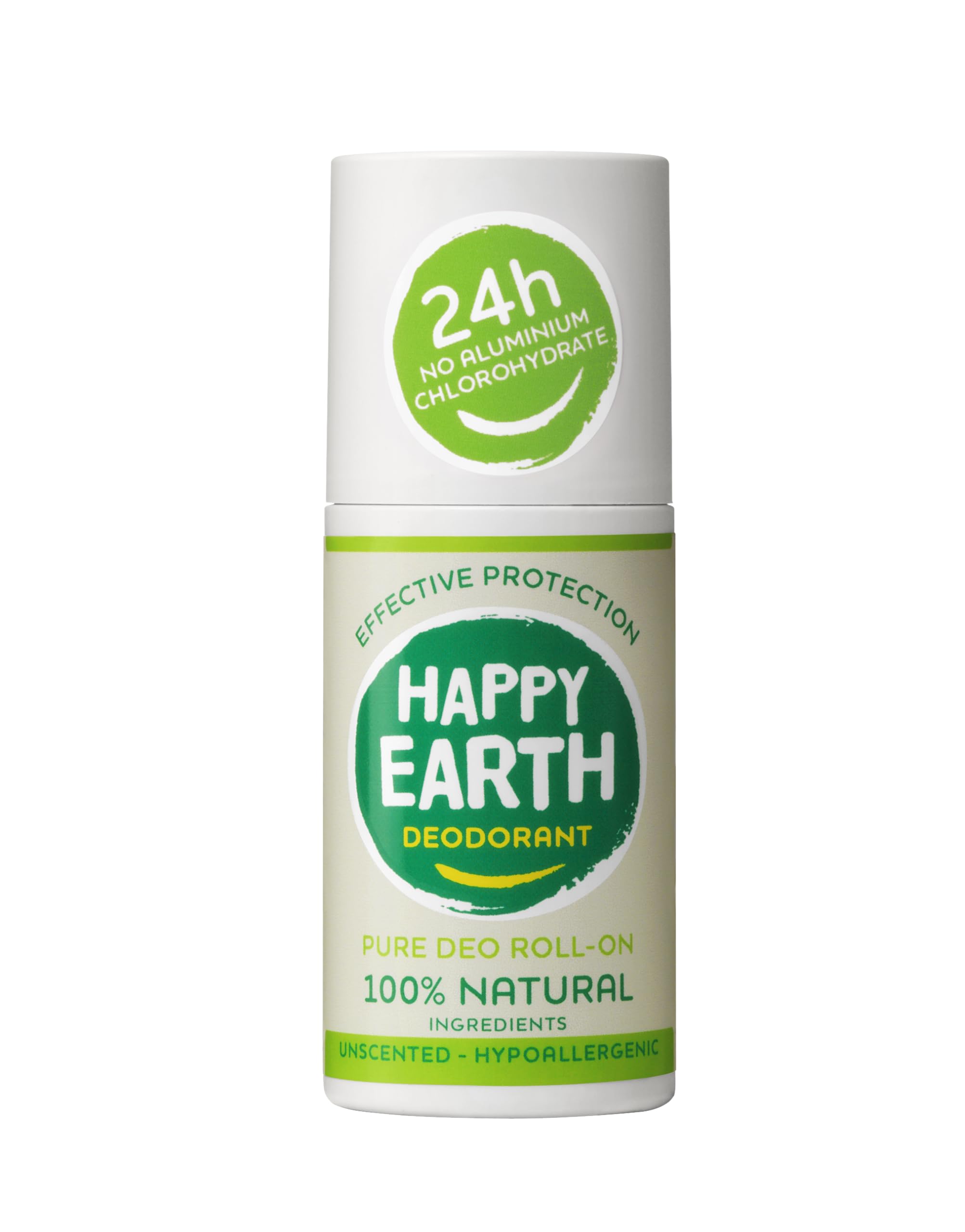 Happy Earth Pure Deo Roll-on Unscented Happy Earth Deodorant is the purest deodorant in the world: 100 natural, 100 effective, and contains 0 chemicals. This hypoallergenic, fragrance-free deodorant features skin-hydrating organic aloe vera, blended with a touch of cheerfulness and potassium alum for 100 effectiveness. In Happy Earth Deodorant, we use only ingredients that make your skin happy. When you apply something to your skin, it's good to know there are no polluting or harmful ingredients such as harsh chemicals, alcohol, or other nasty additives. That's why we proudly carry the NATRUE and Vegan Society labels. Our bottles are made from 100 recycled plastic and contain no harmful impurities. This way, you not only take good care of yourself, but also of our planet! For your pampering: • 100 effective protection against body odor • 100 natural ingredients – Certified natural • 100 recycled plastic bottle • Vegan – Certified by the Vegan Society • Hypoallergenic, suitable for even the most sensitive skin • Leaves no marks on clothing • Contains no aluminum hydrate, chlorine hydrate, alcohol, parabens, propellants, triclosan, or mineral oils • Not tested on animals INGREDIENTS Aqua, Betaine, Potassium Alum, Aloe Barbadensis Leaf Juice , Sodium Lactate, Triethyl Citrate, Propanediol, Levulinic Acid, Sodium Levulinate, Glycerin, Xanthan Gum, Magnesium Chloride, Sodium Bicarbonate, Potassium Sorbate, Lactic Acid. Organic SAFETY WARNING For external use only. Avoid contact with eyes. See moreFree from microplastics and contains 0 aluminum chlorohydrate, alcohol, parabens, propellants, triclosan, and mineral oils. Certified Vegan (Vegan Society). Sustainable packaging: 100 recycled plastic bottle. 24-hour effective protection against body odor. 100 natural ingredients (NATRUE certified).Happy Earth Déodorant roll-on 100 naturel non parfumé 75 mlDESCRIPTION DU PRODUIT DESCRIPTION DU PRODUIT Happy Earth Pure Deo Roll-on Unscented Happy EARTH DEODORANT est le déodorant le plus pur dans le monde : 100 naturel, 100 efficace et contient 0 de produits chimiques. Déodorant hypoallergénique sans odeur avec aloe vera bio hydratant pour la peau, mélangé avec une touche de cheerfulness et potassium alum pour 100 d'efficacité. Dans Happy Earth Deodorant, nous utilisons uniquement des ingrédients qui rendent votre peau heureuse. Si vous appliquez quelque chose sur votre peau, il est bon de savoir qu'il n'y a pas de polluting et d'ingrédients sans danger tels que des produits chimiques, de l'alcool ou d'autres additifs dégoûtants. C'est ce que nous portons proudly les étiquettes NATRUE et Vegan Society. Nos bouteilles sont fabriquées en plastique 100 recyclé et ne contiennent pas d'hélices nocives. This way you don't only take good care of yourself, but also of our planet! Pour vous faire plaisir : • Protection 100 efficace contre les odeurs corporelles • Ingrédients 100 naturels – Certifié naturel • Bouteille en plastique 100 recyclée • Vegan – Certifié Vegan Society • Hypoallergénique, adapté à la peau la plus sensible • Ne laisse pas de traces. en vêtements • Ne contient pas d'hydrates de chlore en aluminium, d'alcool, de parabens, de propellants, de triclosans et d'huiles minérales • Non testé sur les animaux INGRÉDIENTS Aqua, Betain e, Potassium Alum, Aloe Barbadensis Leaf Juice , Sodium Lactate, Triethyl Citrate, Propanediol, Levulinic Acid, Sodium Levulinate, Glycerin, Xanthan Gum, Magnésium Chloride, Sodium Bicarbonate, Potassium Sorbate, Lactic Acid. Organique AVERTISSEMENT DE SÉCURITÉ Pour une utilisation externe uniquement. Évitez tout contact avec les yeux. Voir plusSans microplastique et contient 0 de chlorohydrate d'aluminium, d'alcool, de parabens, de propellants, d'huiles triclosan et minérales. Certifié Vegan (Vegan Society). Emballage durable : bouteille en plastique 100 recyclée. 24 heures de protection efficace contre les odeurs corporelles. Ingrédients 100 naturels (NATRUE certifiés).
