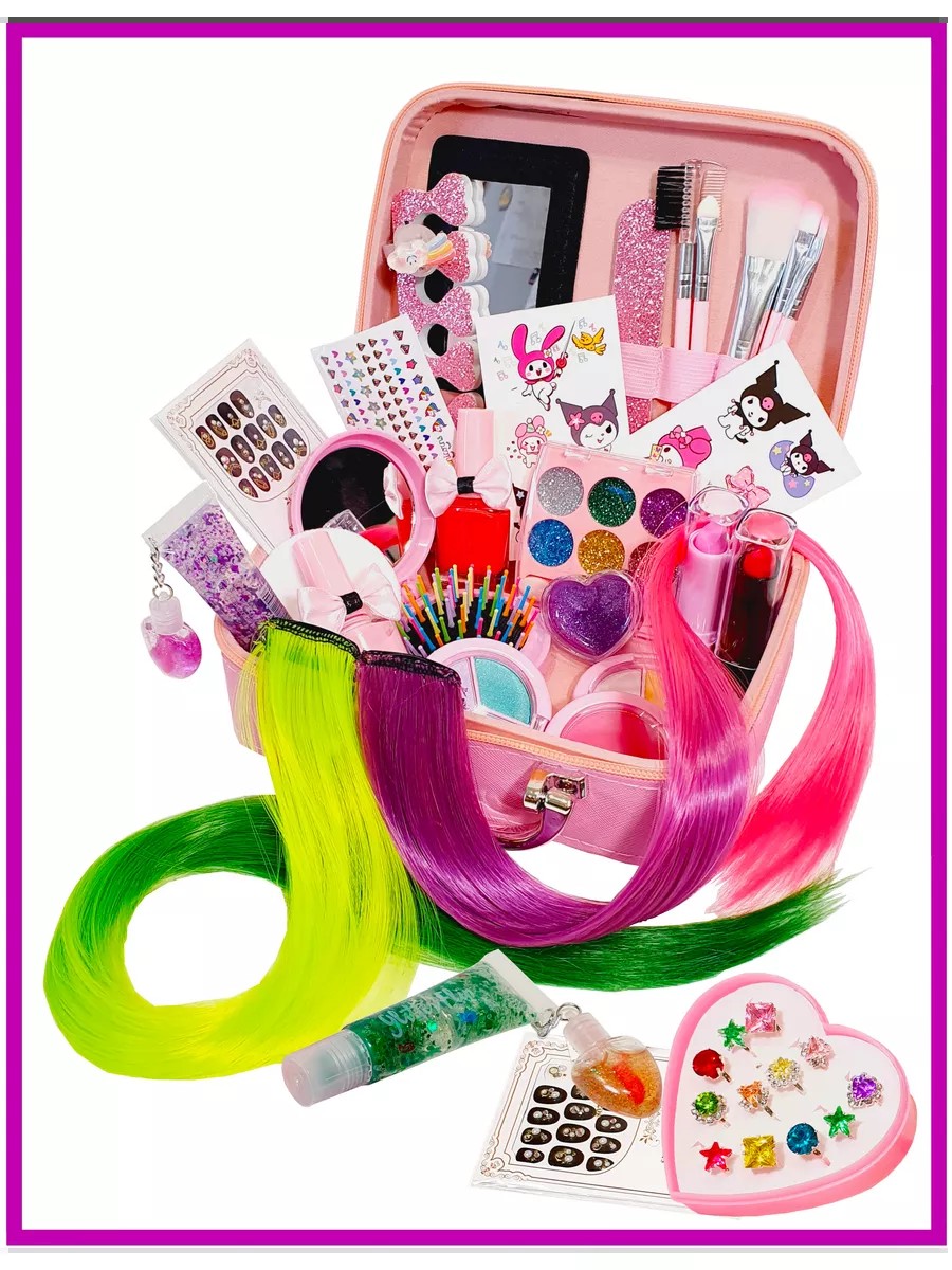 This gift set of cosmetics for girls with colorful curls on clips is the perfect choice for the youngest fashionistas dreaming of a luxurious makeup look.