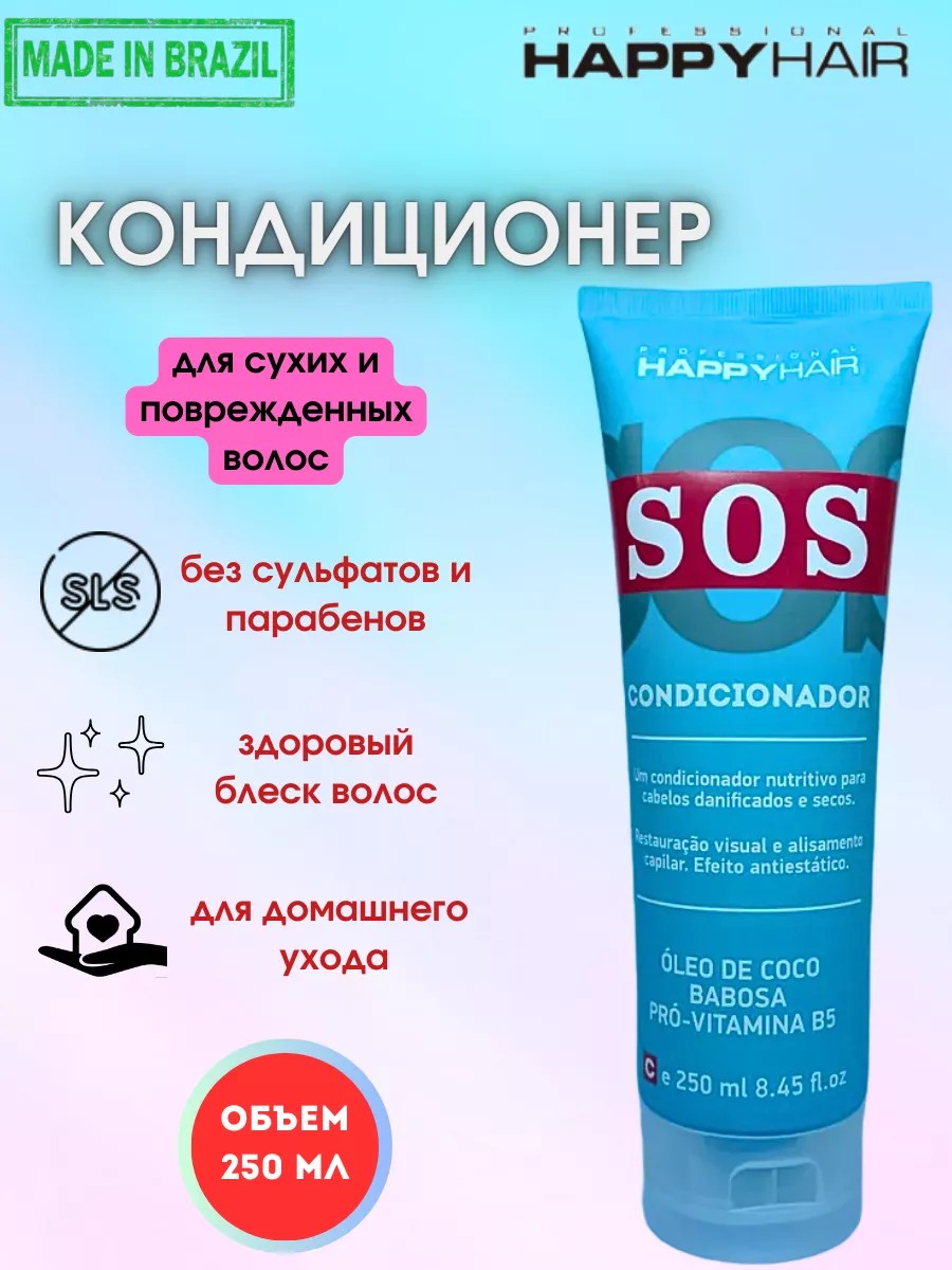 Бессульфатный кондиционер HAPPY HAIR SOS 250 мл разработан для тщательного ухода за вашими волосами, обеспечивая им восстановление, блеск и здоровье. Профессиональный домашний уход за волосами. Лидирующая мировая марка бразильского кератинового выпрямления и восстановления волос HAPPY HAIR представляет домашний уход для всех типов волос. Бразильские технологии бренда непрерывно работают над созданием инновационных профессиональных продуктов для ухода за волосами, используют лучшие ингредиенты. Линейка HAPPY HAIR направлена на сохранение и продление эффекта от процедур кератинового выпрямления, ботокса для волос, нанопластики волос.
