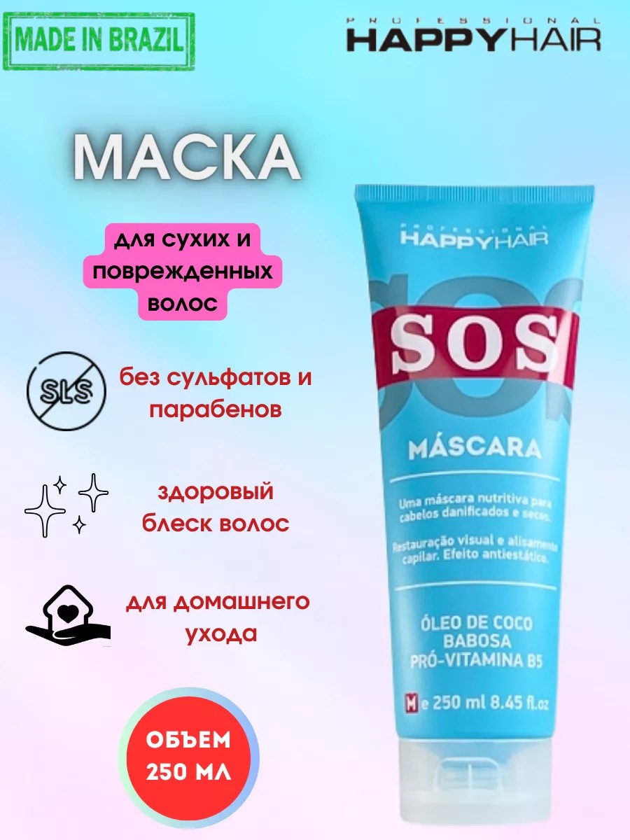 Бессульфатная маска для волос HAPPY HAIR SOS 250 мл разработана для тщательного ухода за вашими волосами, обеспечивая им восстановление, блеск и здоровье. Профессиональный домашний уход за волосами. Лидирующая мировая марка бразильского кератинового выпрямления и восстановления волос HAPPY HAIR представляет домашний уход для всех типов волос. Бразильские технологии бренда непрерывно работают над созданием инновационных профессиональных продуктов для ухода за волосами, используют лучшие ингредиенты. Линейка HAPPY HAIR направлена на сохранение и продление эффекта от процедур кератинового выпрямления, ботокса для волос, нанопластики волос.