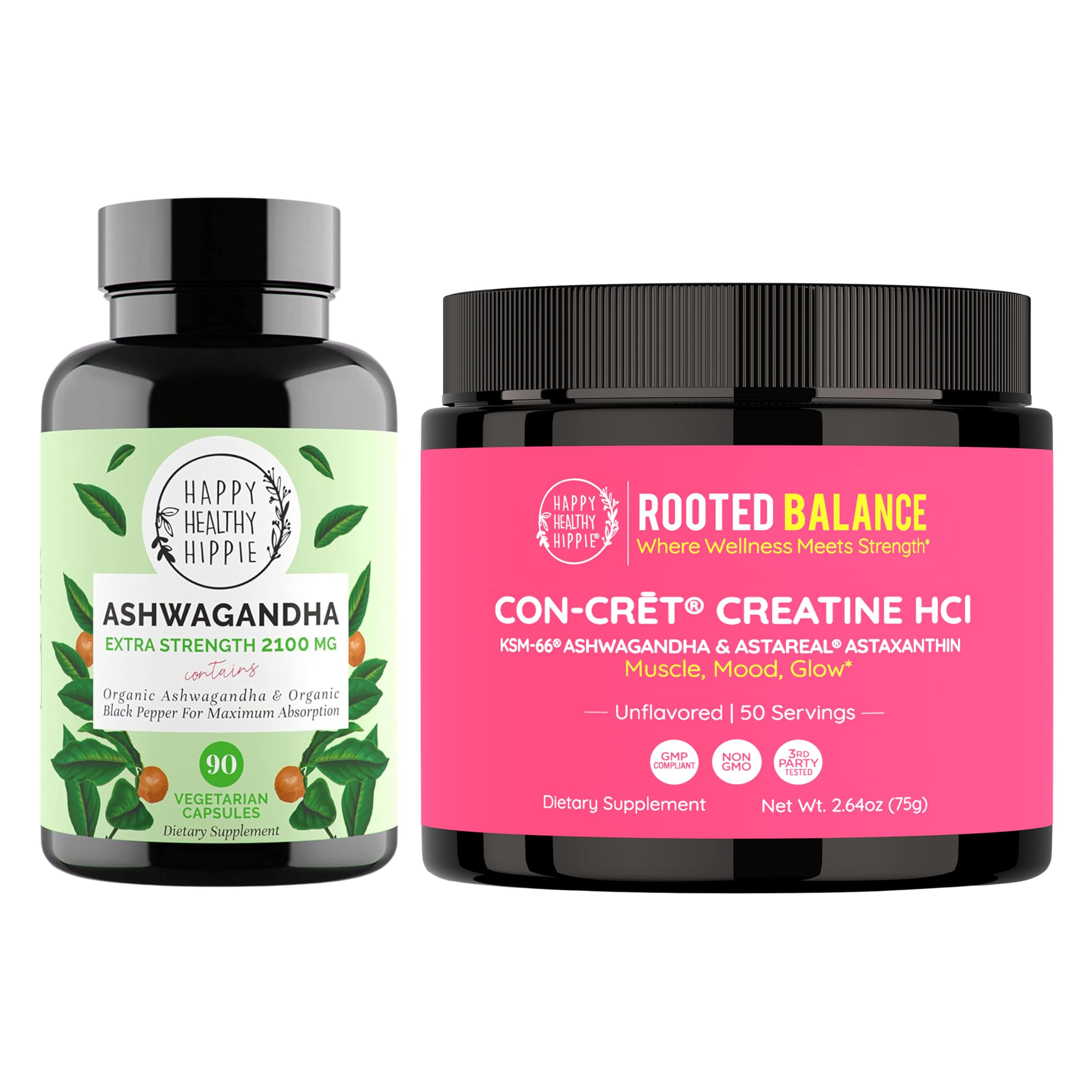 Happy Healthy Hippie Creatine HCl Powder & Organic Ashwagandha Capsules