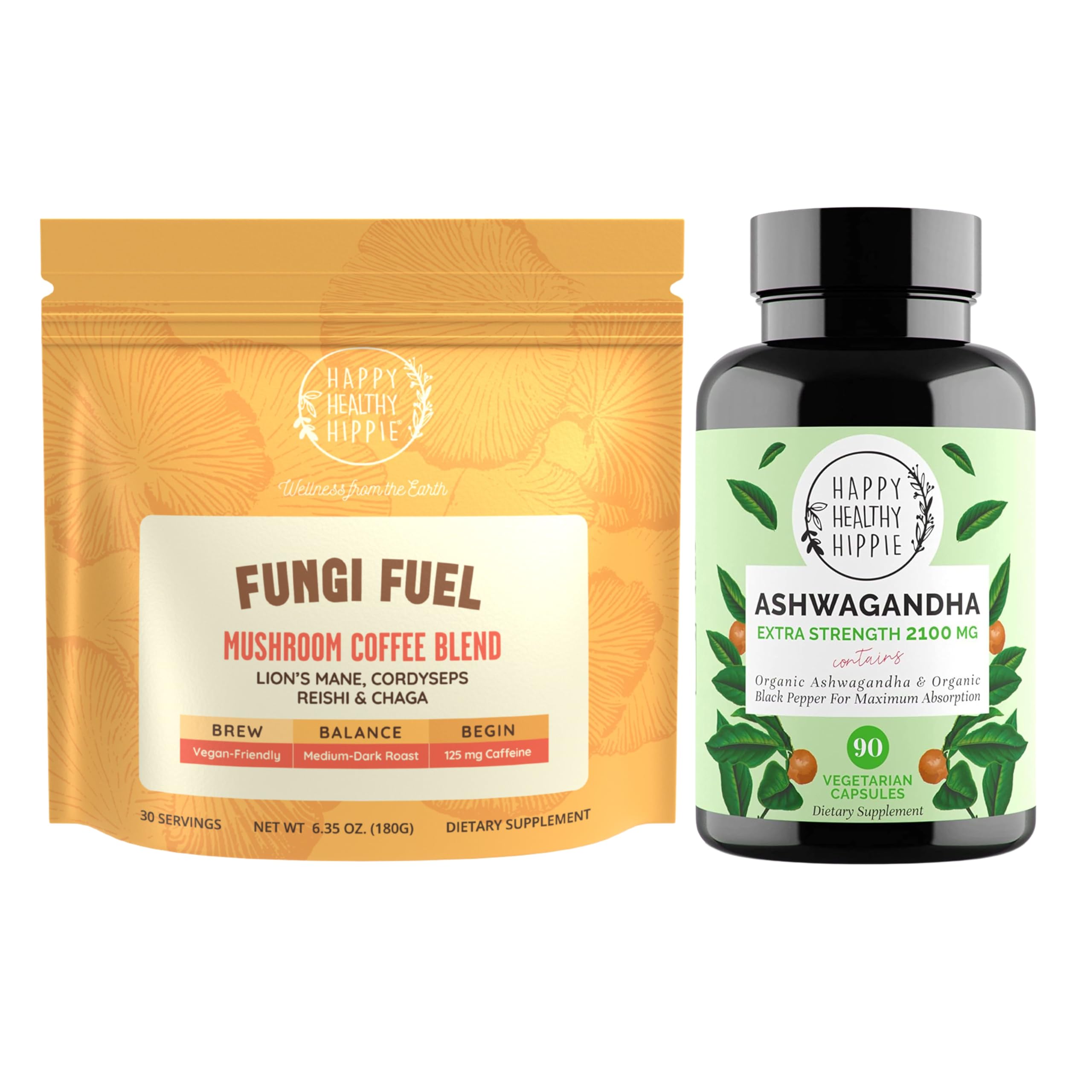 Happy Healthy Hippie Fungi Fuel Mushroom Coffee & Organic Ashwagandha Capsules