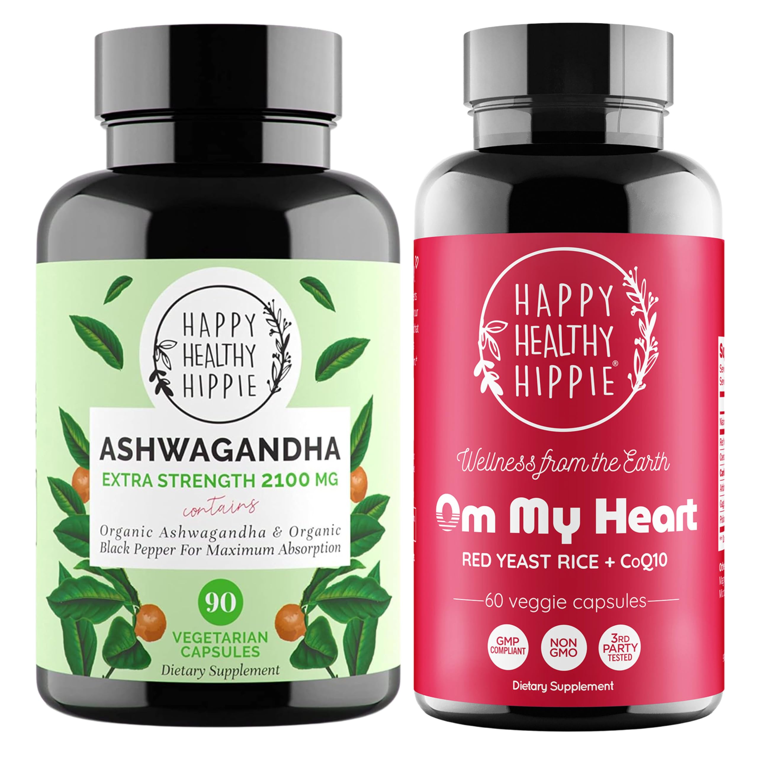 Happy Healthy Hippie Red Yeast Rice with CoQ10 Supplement & Organic Ashwagandha Capsules