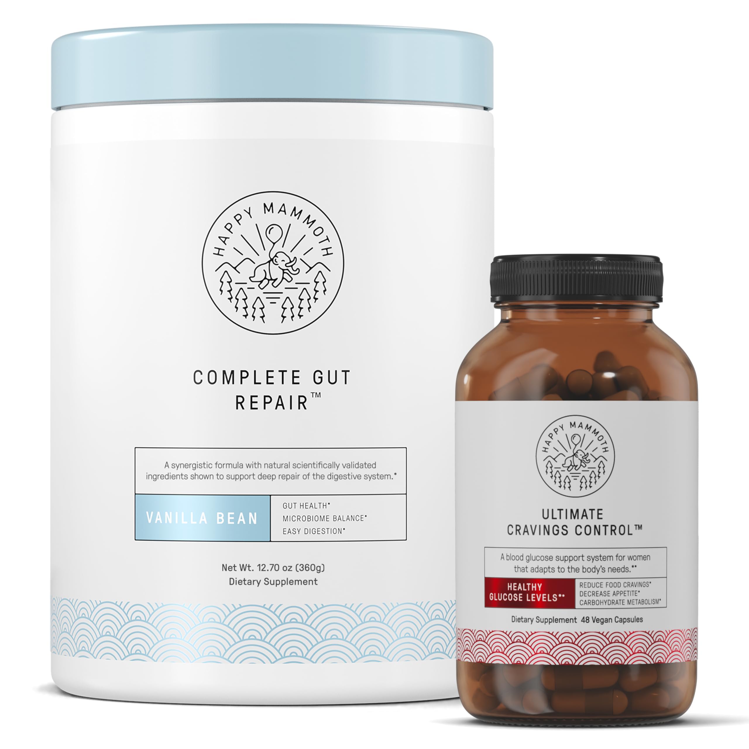 Happy Mammoth Gut Health Kit with Complete Gut Repair Powder and Ultimate Craving Control Capsules, Supports Digestion and Metabolism, 2-Piece Set