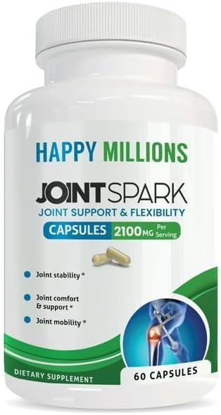 HAPPY MILLIONS JOINTSPARK Joint Support Supplement Glucosamine, Chondroitin & MSM with Boswellia, Turmeric, Quercetin & Bromelain Supports Joint Comfort Gluten Free, Non GMO 60 Capsules