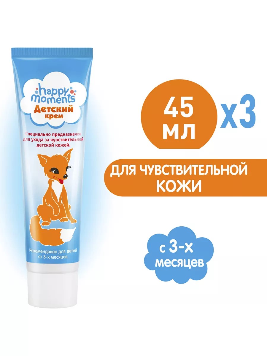 С первым кремом малыш знакомиться сразу после своего рождения - поэтому его рецептура должна быть особенно нежной, безопасной и натуральной! Крем содержит натуральные масла и экстракт ромашки - что обеспечивает эффективный уход за кожей малышей! Именно поэтому, этот крем рекомендован педиатрами для ухода за детьми с 3 месяцев. Крем обладает насыщенной текстурой, отлично смягчает, питает и увлажняет чувствительную детскую кожу. Попробуйте использовать крем для массажа - для улучшения скольжения и смягчения кожи ! Так же для ухода за младенцами в линейке продуктов Happy moments вы можете найти шампунь Дракоша baby и жидкое крем-мыло для подмывания младенцев Дракоша baby! Бренд Happy Moments - это новое поколение знаменитых и всеми любимых брендов Маленькая фея и Дракоша, которые теперь весело соседствуют друг с другом под единой маркой. Happy moments – это детская косметика, которая помогает превратить ежедневные заботы о ребенке в радостные моменты. Ассортимент бренда включает детские шампуни, уход за полостью рта, средства для купания для детей от 0 лет, а также средства по уходу за кожей и декоративную косметику для девочек. Детская косметика Happy moments стала ещё более привлекательной для мам, ведь она соответствует не только российским, но и международным стандартам безопасности. Happy moments - больше счастливых моментов вместе!