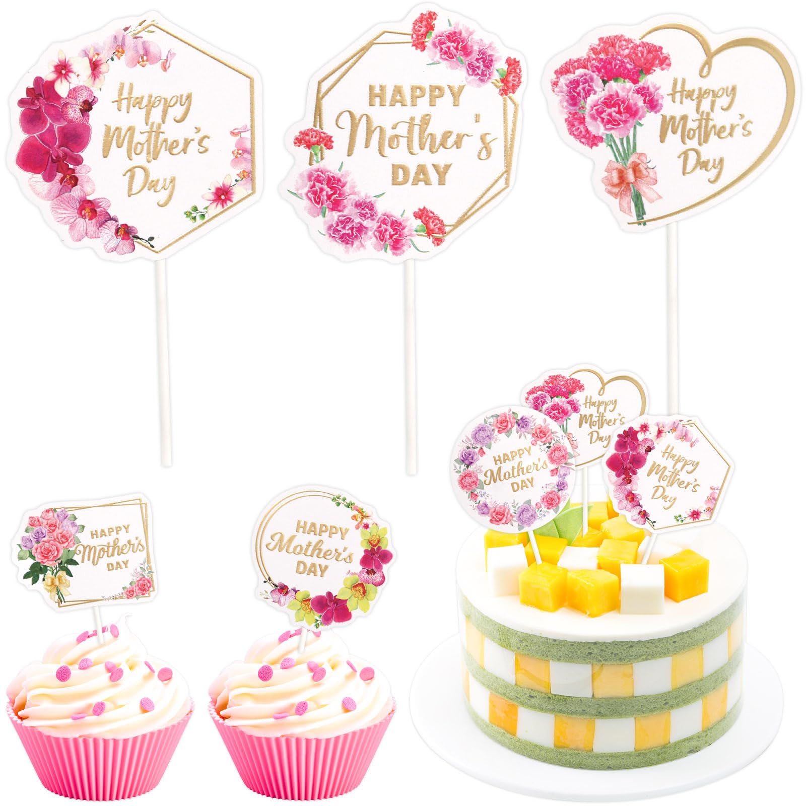 Wide Application: Not only for Mother's Day, you can use the cake toppers for birthday party or daily use. The watercolor flowers design will decorate your daily life. Mum Birthday Party Supplies: Perfect mothers day cake decorations for party decoration and spring theme party. The cupcake toppers are pre-assembled and easy to use. Gold Foil Design: The gold foil mother's day cupcake decorations are suitable for mother themed party. Put them on cupcakes, cakes, fruits, dessert, pie, ice-cream, or any dish and food you want. Floral Designs: These mother's day cupcake toppers are composed of words and colorful flowers. Perfect for decorating Mother's Day or Birthday cakes to enhance the party atmosphere. Package Includes: 24pcs gold foil mother's day cupcake toppers with 6 designs. Durable card stock with paper stick.