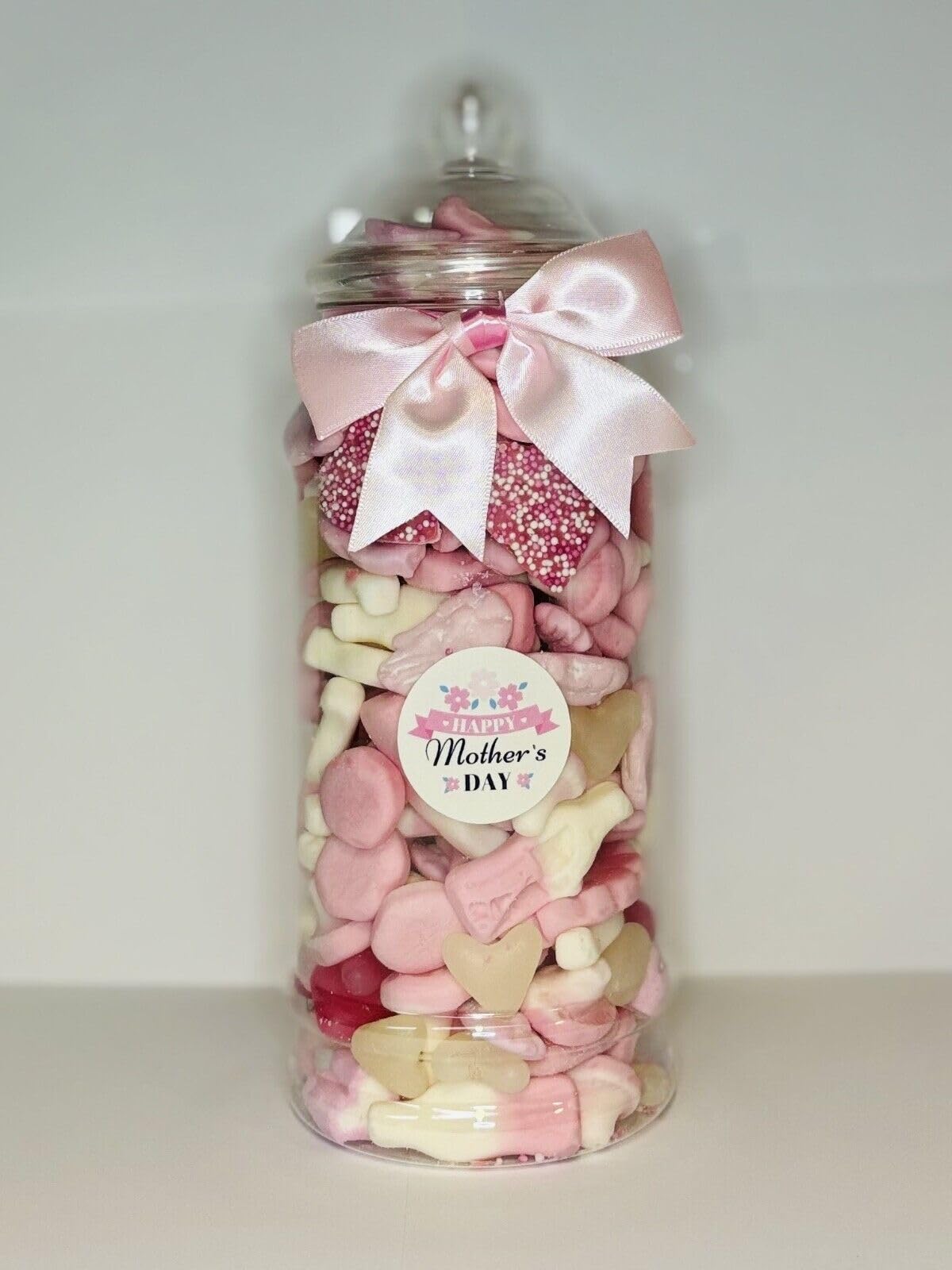 Happy Mothers Day Mum Filled Pink Pick N Mix Gummy Sweet Jar Gift Present 970ml