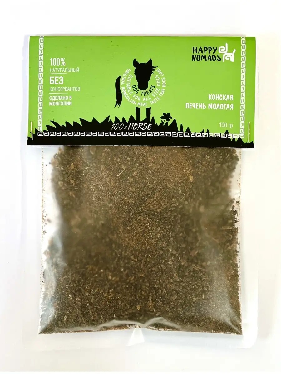 Молотая конская печень Happy Nomads легкоусвояемый и диетический субпродукт. Данное лакомство для кошек и собак отлично подойдет в качестве добавки для улучшения аппетита. Конина имеет в своём составе много полезных витаминов, таких как калий, железо, натрий, фосфор, витамина В, лизин и фолиевою кислоту. Благодаря нашей уникальной технологии создания собачьих лакомств, печень для собак не теряет свои полезные качества, в то же время являясь очень вкусной и полезной. Эта собачья вкусняшка гипоаллергенна, что делает ее подходящей для собак и кошек на специальной диете или с аллергией.