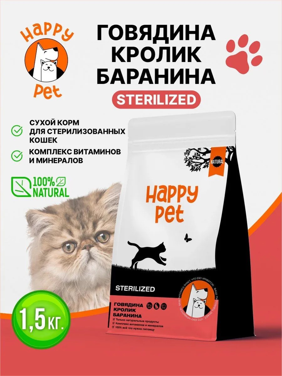 Ваш питомец стал менее активным после стерилизации, а вы хотите сохранить его вес в норме и укрепить здоровье? сухой корм для кошек Happy Pet Natural Superpremium с говядиной, уткой и бараниной — идеальное решение для профилактики лишнего веса, поддержки иммунитета и сохранения мышечной массы!