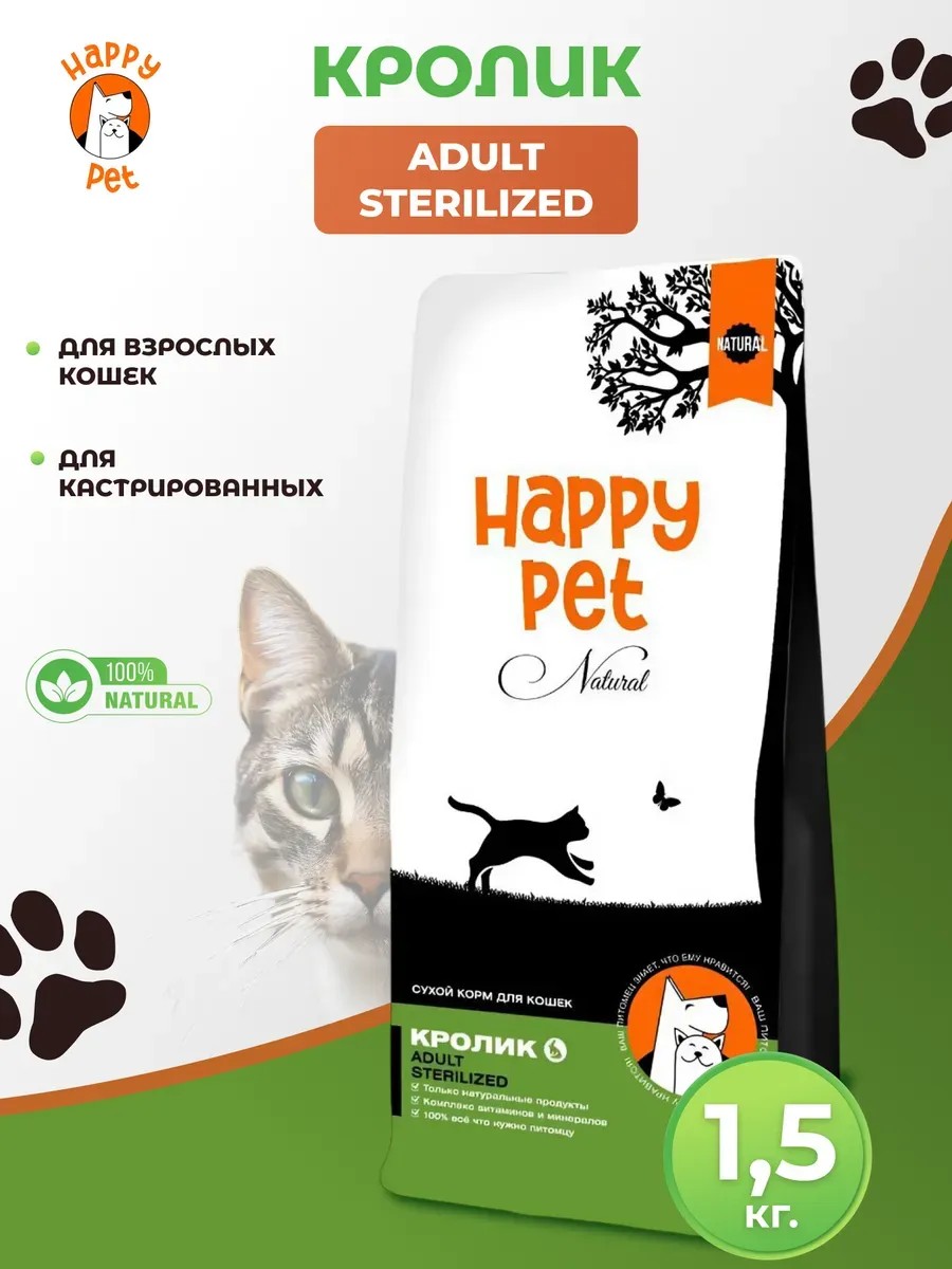 | Полное наименование товара | Сухой корм для стерилизованных кошек и кастрированных котов Happy Pet Natural Sterilized с кроликом 1.5 кг |