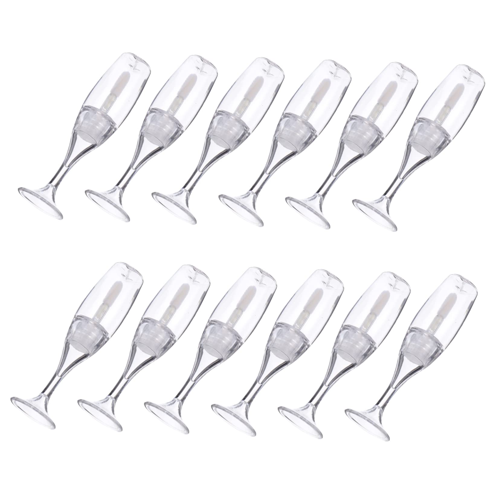 The package includes 12 lip gloss tubes. : Set of 12 empty lip gloss tubes measuring 79 x 0.5 cm. Features: Material: Plastic. Refillable bottles: Designed in the shape of a wine glass. Made of plastic, they are washable and reusable, durable and reliable for long-term use. Empty lip gloss bottles with a transparent body, allowing you to easily and clearly see the remaining volume. Lip gloss bottle: 14 x 0.5 cm. Lipstick tube: Unique shape for filling different lip gloss colors and providing optimal daily convenience. Plastic bottles: Can be used as containers for different lip gloss colors, eyelash growth products, etc. Lipstick bottles: 79 inches. Lip gloss bottles: Dimensions: 8 cm. Lip gloss storage container: Small and portable, easy to carry and store, for filling your lipstick or other cosmetics. Lip gloss tube - You will receive 12 mini lip gloss tubes in the shape of a wine glass. Choices for beginners to practice with, for everyday use, or for making lip gloss samples for your family.