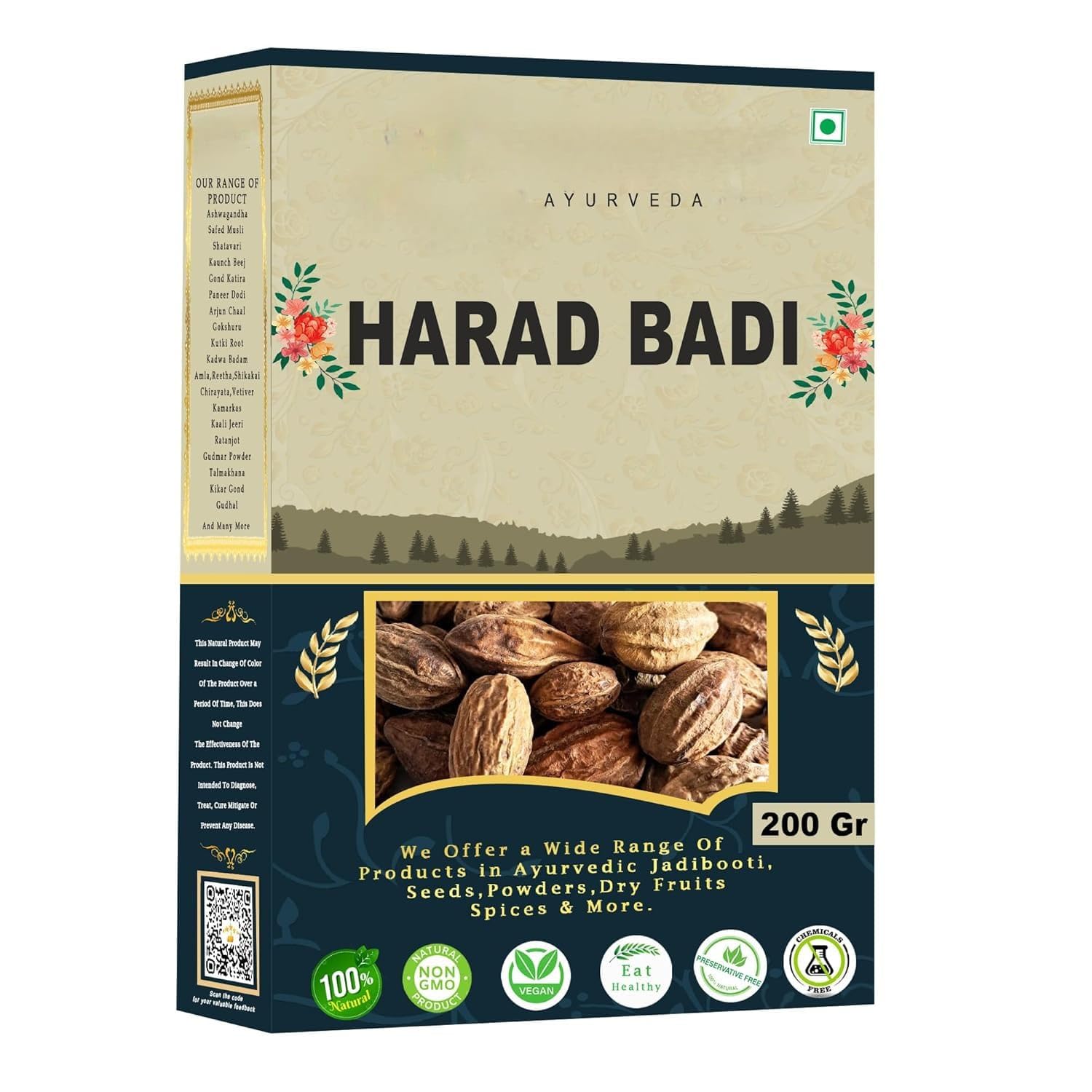 Natural Harad Badi boosts energy levels and enhances vitality, supporting an active and healthy lifestyle. Raw Harad Badi improves metabolism, making it an effective natural aid for weight management and maintaining a healthy weight. Organic Harad Badi is rich in antioxidants, helping to strengthen the immune system. Harad Badi Whole aids digestion, alleviating bloating and constipation, making it an essential herb for maintaining a healthy digestive system naturally. Harad Badi is known as a powerful Indian herb, which has been used in Ayurveda for thousands of years for many health problems.
