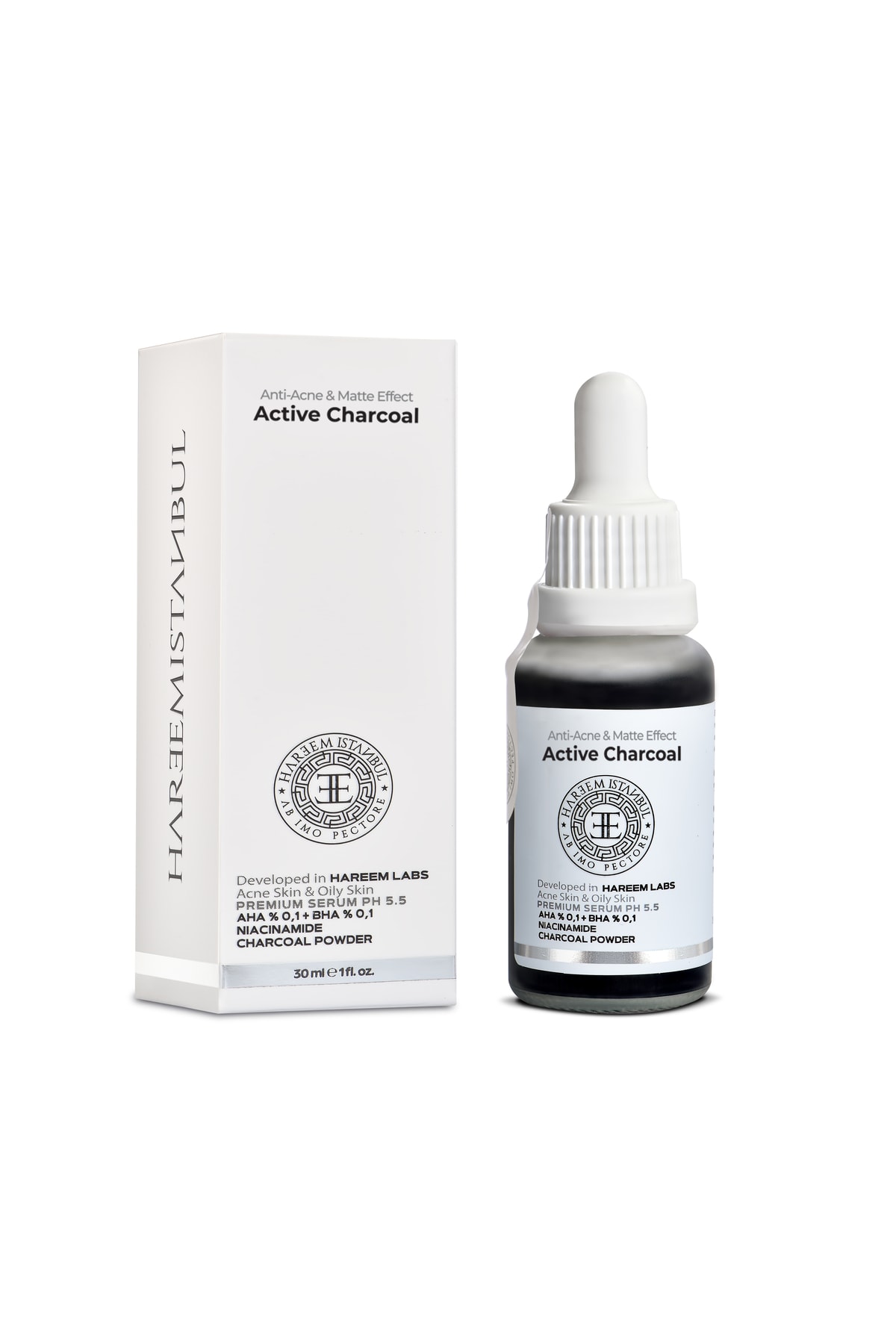 HAREEM - Activated Carbon Black Serum - Aha Bha Niacinamide and Charcahol Powder Serum