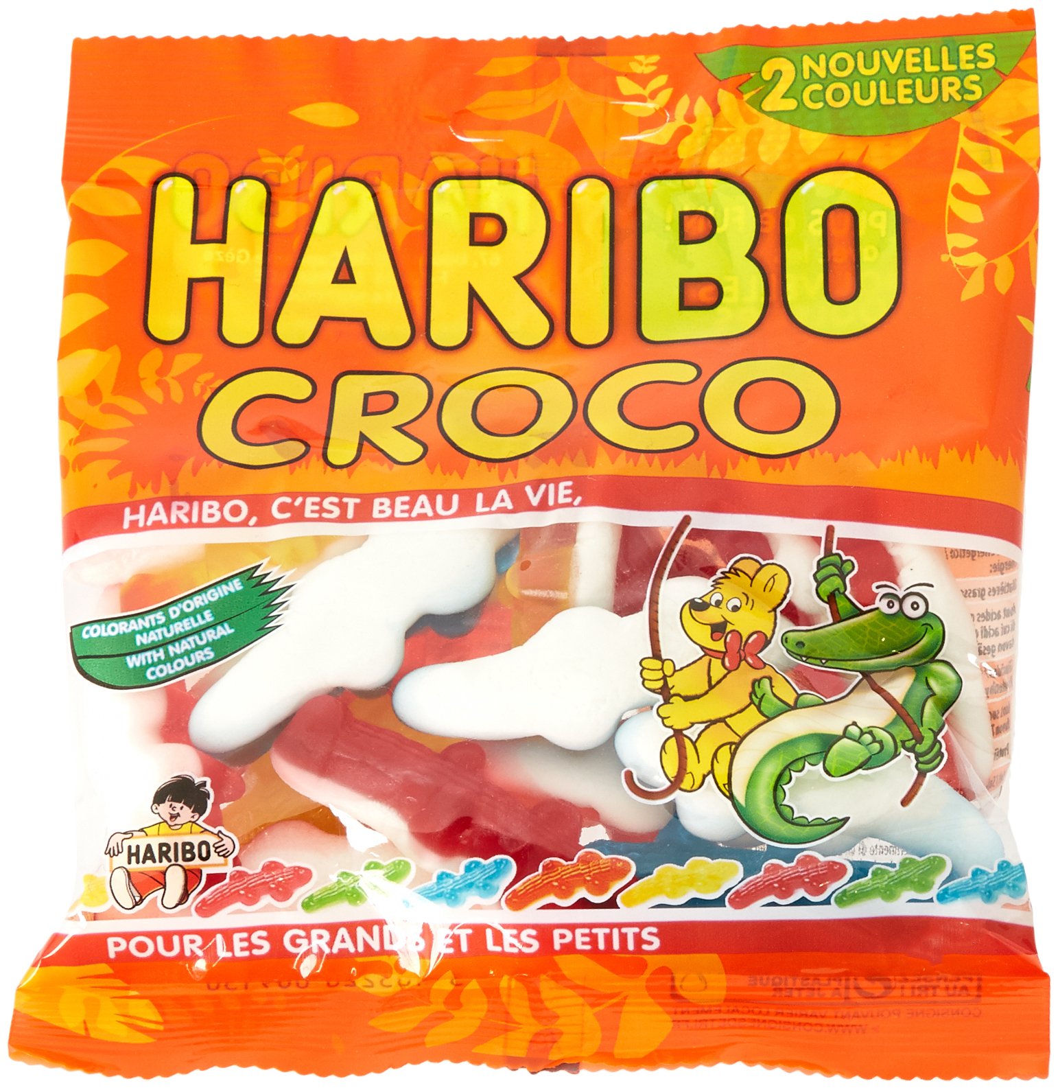 HARIBO CROCO PIK CANDY Haribo tangy candy with a tangy fruit flavor. Crocodile-shaped candy with tangy flavors Packaging: Box of 30 x 120g sachets Composition: Glucose syrup, sugar, dextrose, gelatin, acidifier: citric acid, fruit and plant concentrate (safflower, spirulina, apple), invert sugar syrup, flavorings, colors: carmines, lutein, coating agent: beeswax, carnauba wax. INGREDIENTS glucose syrup sugar dextrose gelatin acidifier: citric acid fruit and plant concentrates: safflower, spirulina, apple invert sugar syrup flavoring colors: carmines, lutein, coating agents: white and yellow beeswax, carnauba wax.Fancy jelly candy. BONBON CROCO PIK HARIBO Confiserie acidulée Haribo au goût fruit qui pique. Bonbon en forme de crocodile aux goûts acidulés Conditionnement : Carton de 30 sachets de 120gr Composition: Sirop de glucose, sucre, dextrose, gélatine, acidifiant : acide citrique, concentré de fruits et de plantes (carthame, spiruline, pomme), sirop de sucre inverti, arômes, colorants : carmins, lutéine, agent denrobage : cire dabeilles, cire de carnauba. INGRÉDIENTS sirop de glucose sucre dextrose gélatine acidifiant: acide citrique concentrés de fruits et de plantes: carthame, spiruline, pomme sirop de sucre inverti arôme colorants: carmins, luteine, agents d'enrobage: cire d'abeille blanche et jaune, cire de carnauba.Confiserie gélifiée fantaisie.